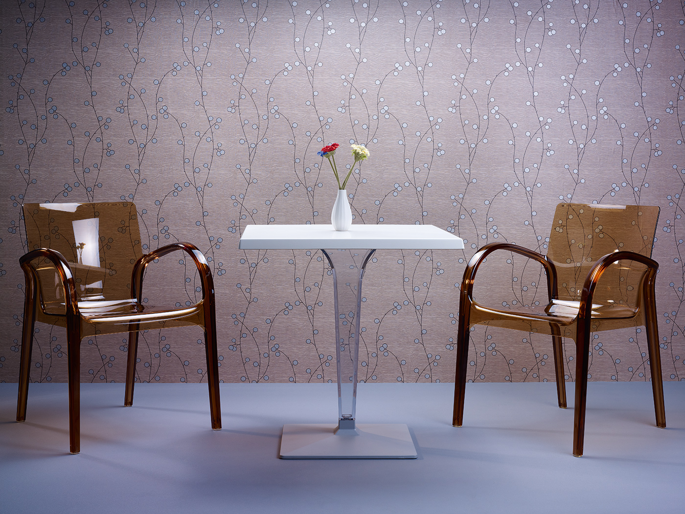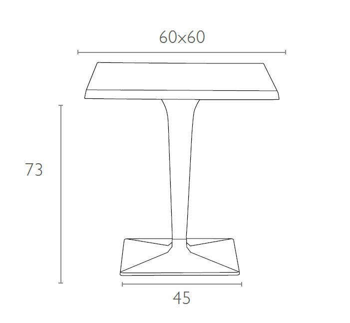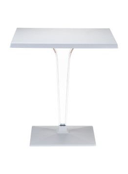 Stół kwadratowy ICE 60x60; blat z werzalitu; noga wykonane z wysokiej jakości transparentnego gładkiego poliwęglanu, który doskonale imituje szkło nadając niebanalny charakter; podstawę stanowi aluminiowa baza. Doskonały stolik do ogrodu czy na taras ale szczególnie polecany do użytku komercyjnego doskonały stolik do restauracyjnego ogródka czy na hotelowy taras. Dokładne wymiary na zdjęciu w galerii.