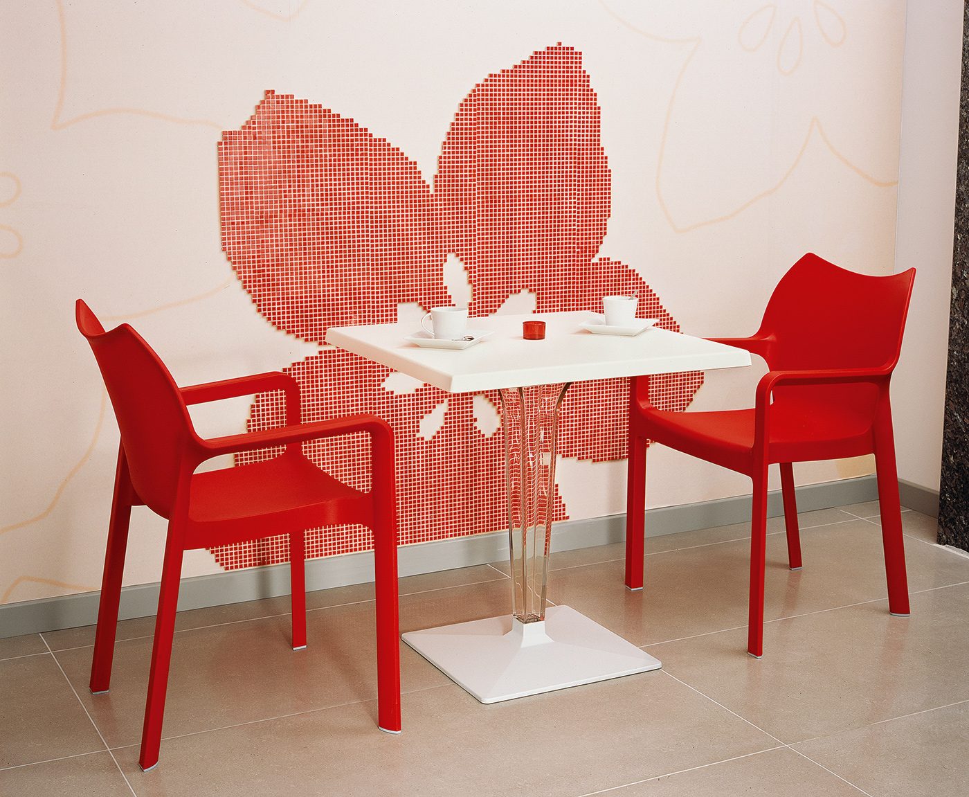 Stół kwadratowy ICE 60x60 blat dostępny w trzech kolorach polecany do wnętrz i plenerów komercyjnych - Oryginał SIESTA.