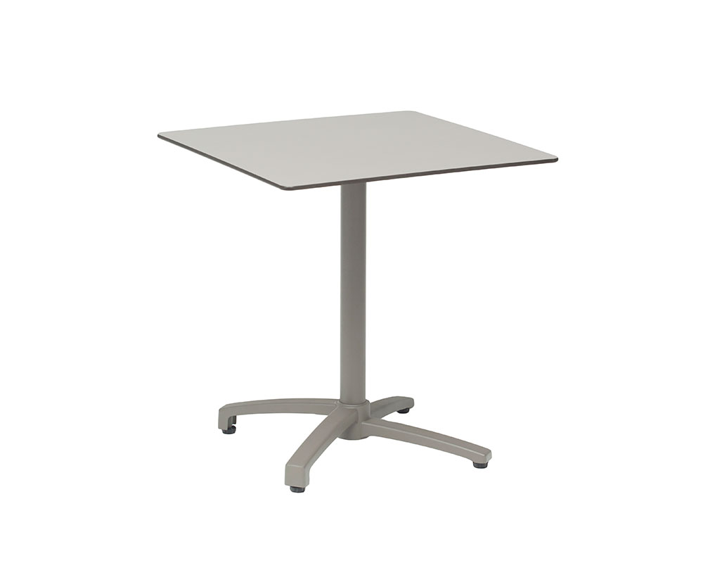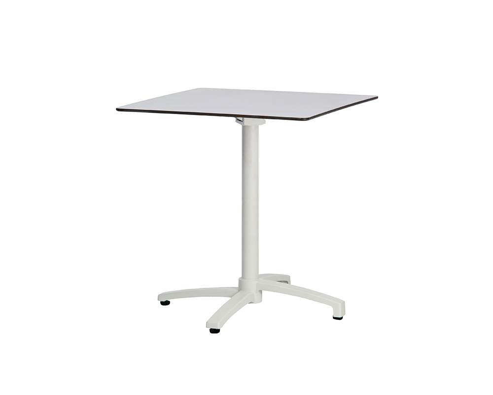 Stolik KOS; nowoczesny składany stolik kawiarniany, restauracyjny; metalowa podstawa na czterech regulowanych nóżkach dostępna w dwóch kolorach. Możliwość składania stolika ułatwia jego przechowywanie. Stolik dostępny z blatem okrągłym w dwóch rozmiarach lub z blatem kwadratowym także w dwóch rozmiarach.
