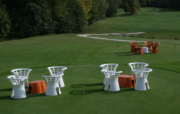Stolik kawowy FLOWER; wykonany z technopolymeru, blat z białego compactopu. Dokładne wymiary na zdjęciu w galerii. Stolik przeznaczony do użytku zarówno do wnętrz jak i na zewnątrz pomieszczeń.