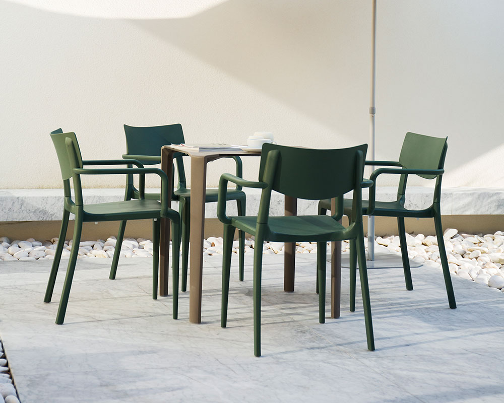 Stoliki One doskonale pasują do krzeseł z naszej oferty, takich jak Park, Hall oraz Town. Przykładowe zestawienie stolika One oraz krzeseł Park: