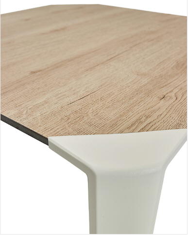 Blat kompaktowy zastosowany do stolików One to prasowany pod wysokim ciśnieniem laminat, impregnowany żywicą oraz pokryty warstwą dekoracyjną impregnowaną żywicą melaminową. Zaletą takiego blatu jest: grubość (w przypadku stolika One 10 mm), odporność na zadrapania, odporność na niską i wysoką temperaturę, higieniczność i łatwe czyszczenie, odporność na środki chemiczne.