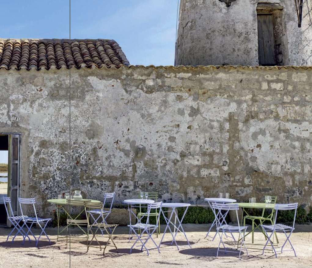 Włoskie stylizowane metalowe krzesła Flower I składane dedykowane do kawiarni, restauracji lub ogrodu.