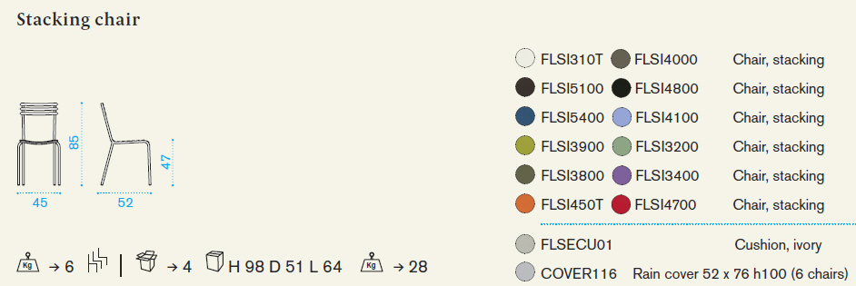 Krzesła produkowane na zamówienie, dostępne w 12 kolorach. Na siedzisko polecamy także poduszkę w kolorze ivory.
