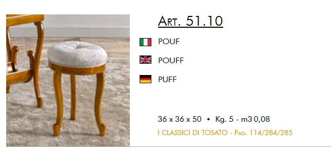Taboret - Pufa stylizowana mod. 51.10 - Tosato Collection