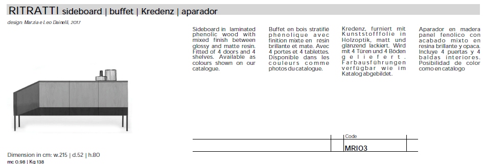Komoda włoska RITRATTI - nowoczesna szafka o wyjątkowym designie, dostępna w dwóch zestawach kolorystycznych. Komoda wyposażona w czworo drzwi i cztery półki.