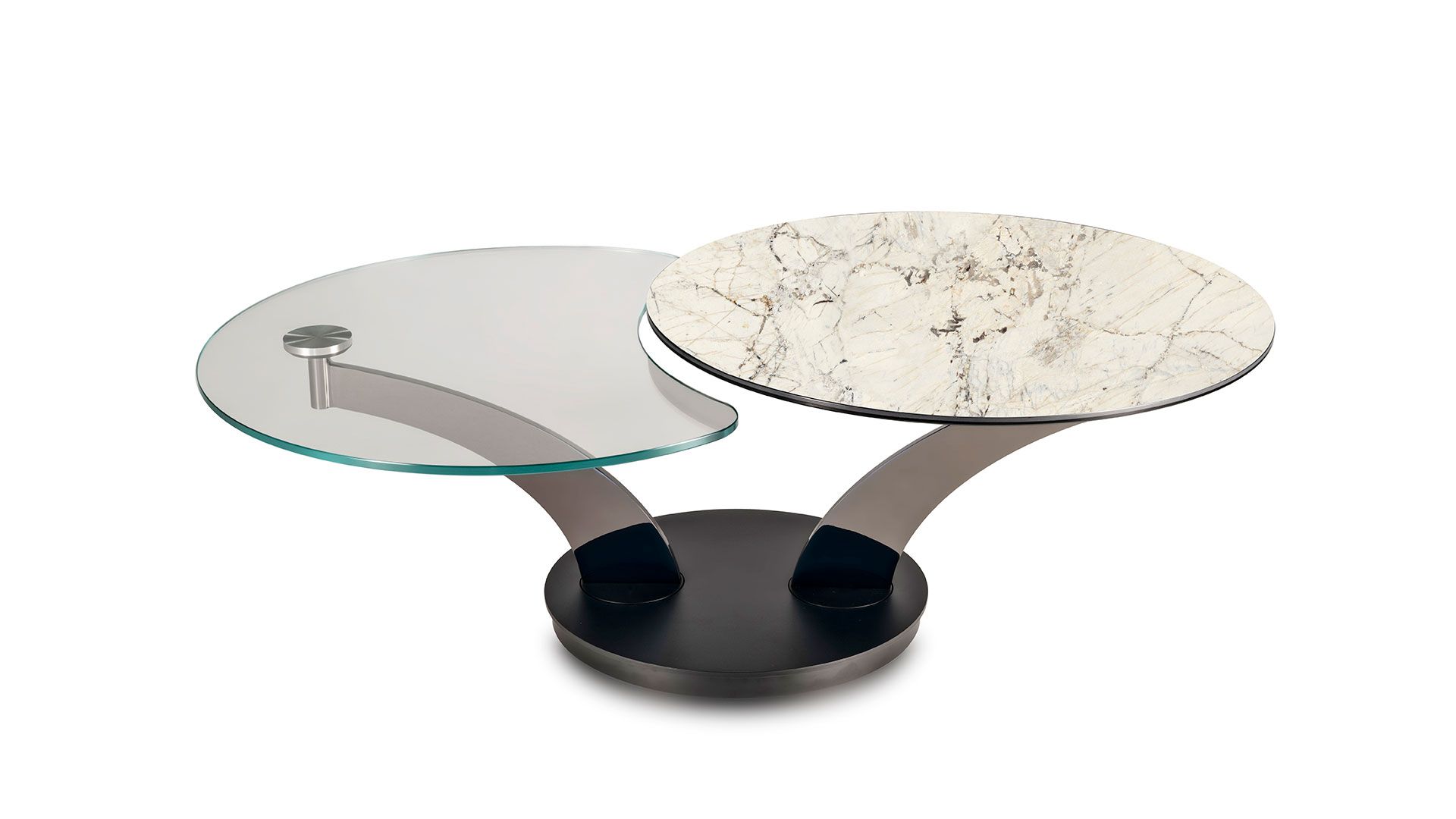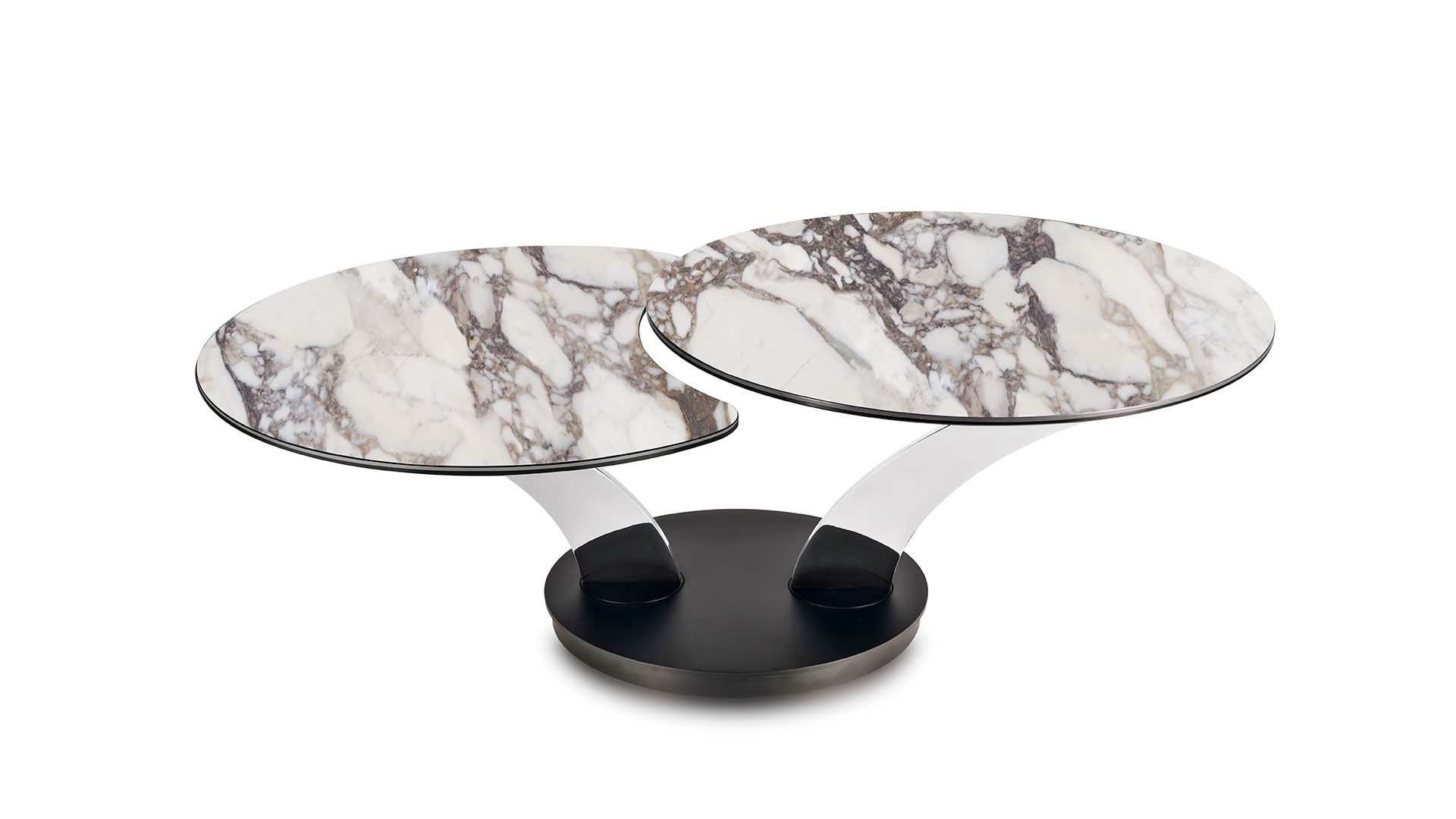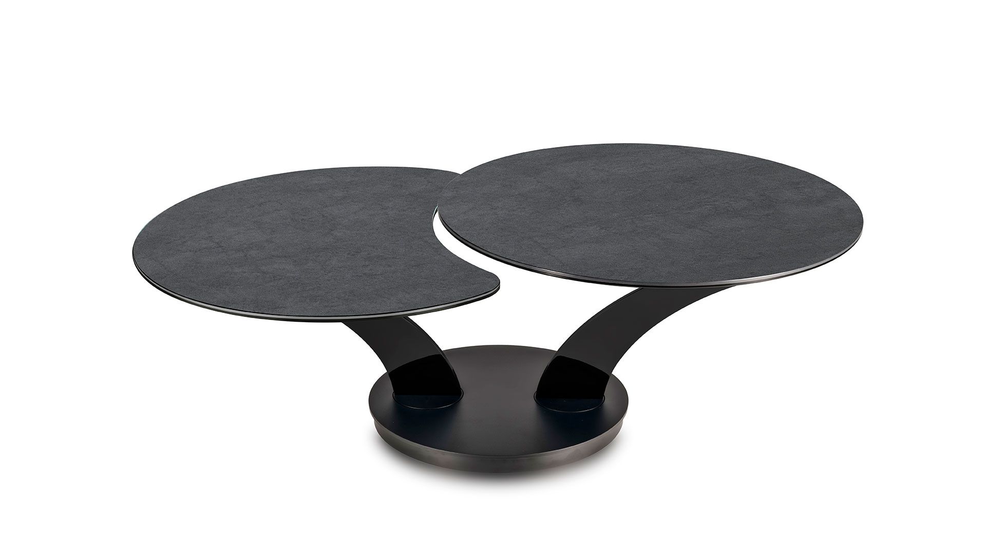 Designerski włoski stolik kawowy SAMURAI - stolik o ciekawym designie; podstawa metalowa; blaty szkło lub ceramiczne. Unikalny mechanizm rozkładający.