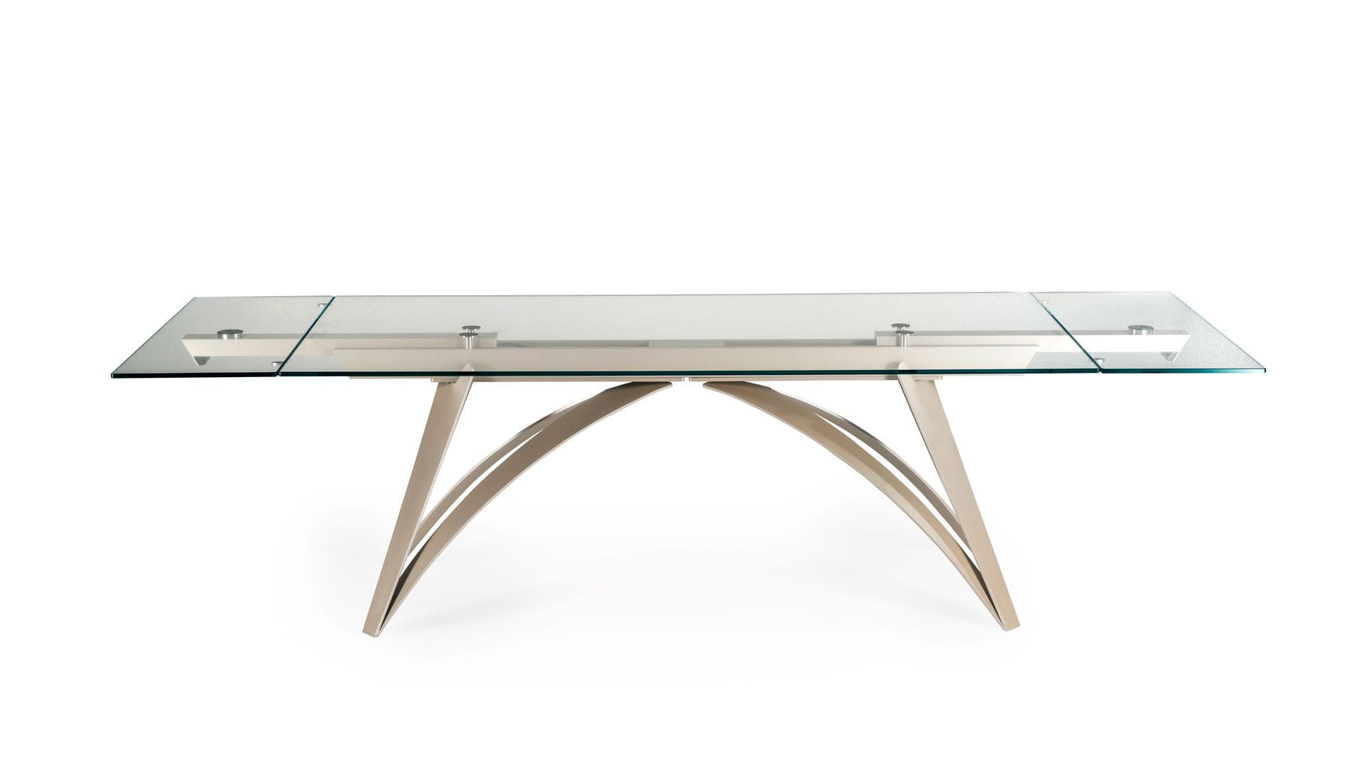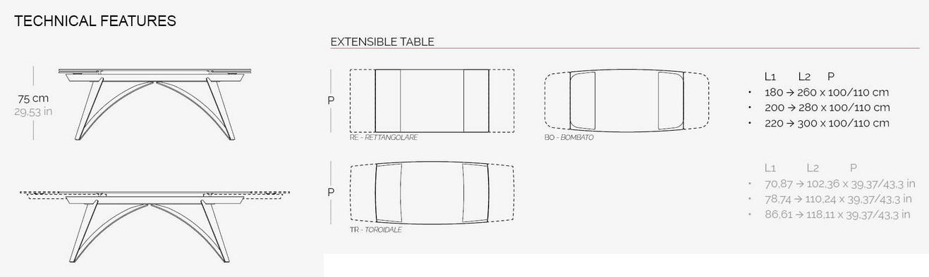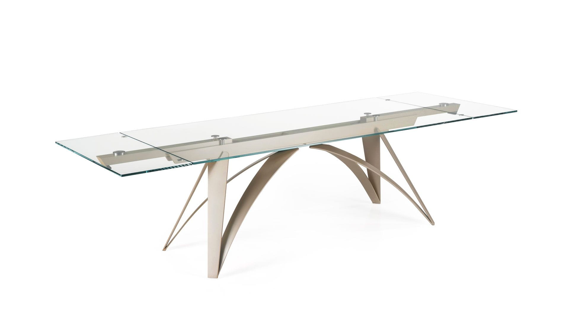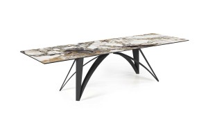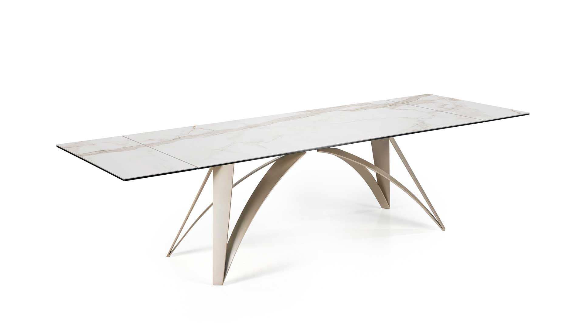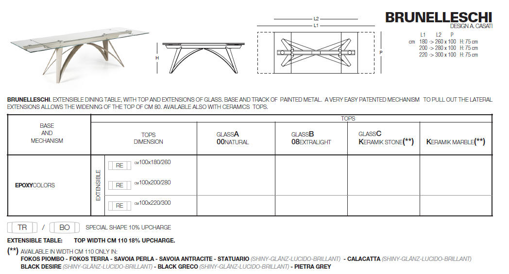 Designerski włoski stół BRUNELLESCHI - stół o intrygującym designie; podstawa lakierowana stal; blat szkło, szkło lakierowane, blat ceramiczny lub marmurowy. Unikalny mechanizm rozkładający. Dostępna wersja rozkładana i nierozkładana.
