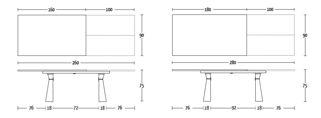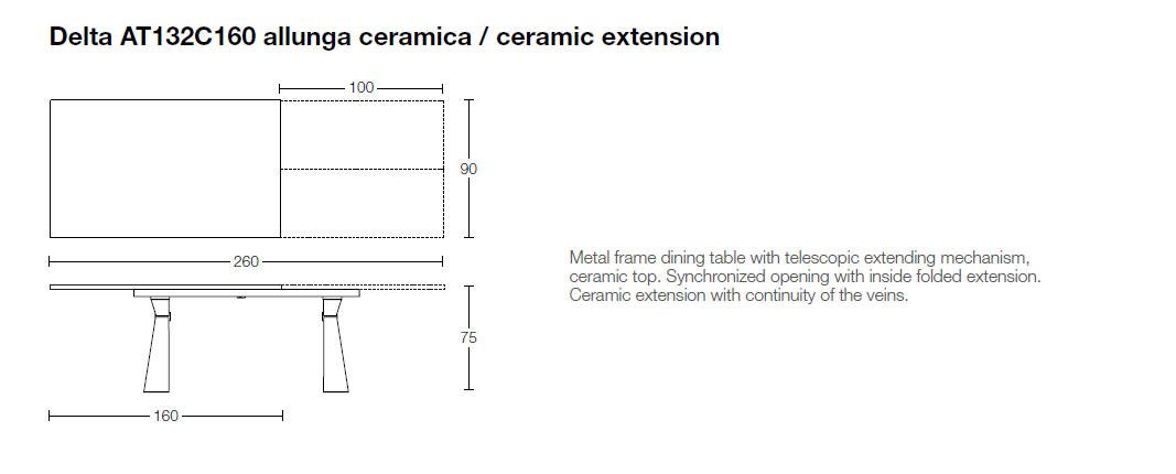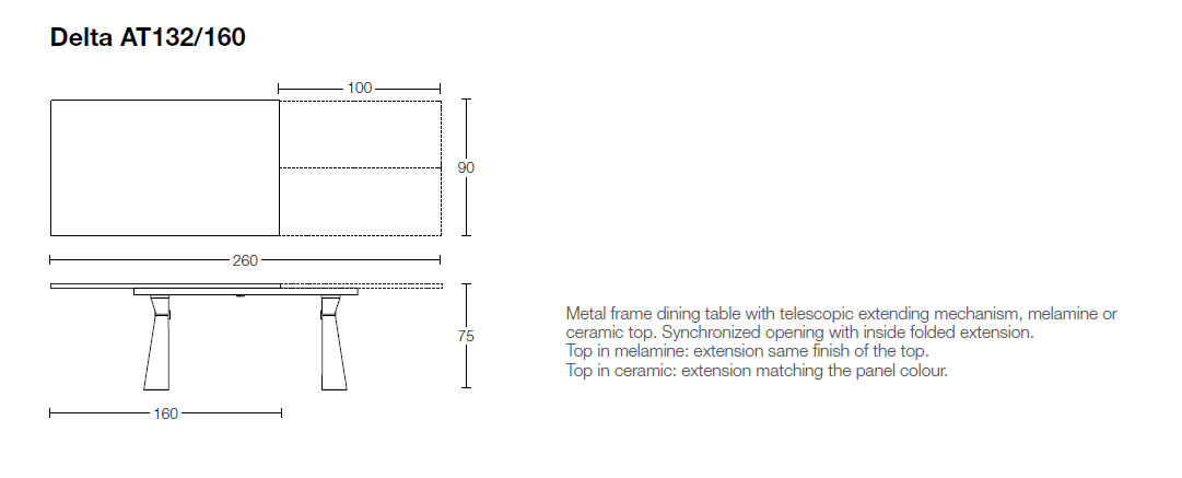 - AT132/160 wymiary: 160-260x90xh75 cm; cena od 10 965 zł brutto (dotyczy wersji z blatem melamina);