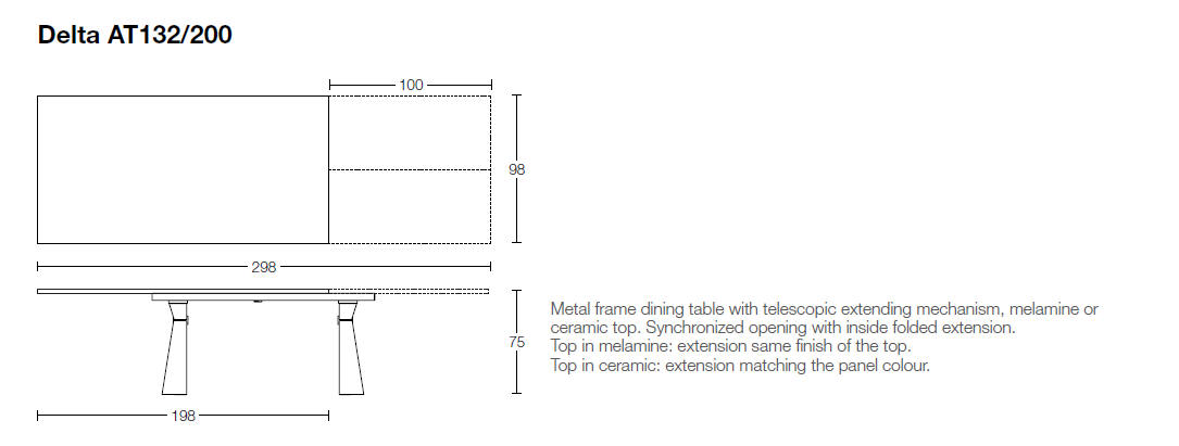 - AT132/200 wymiary: 198-298x98xh75 cm; cena od 11 441 zł brutto (dotyczy wersji z blatem melamina).