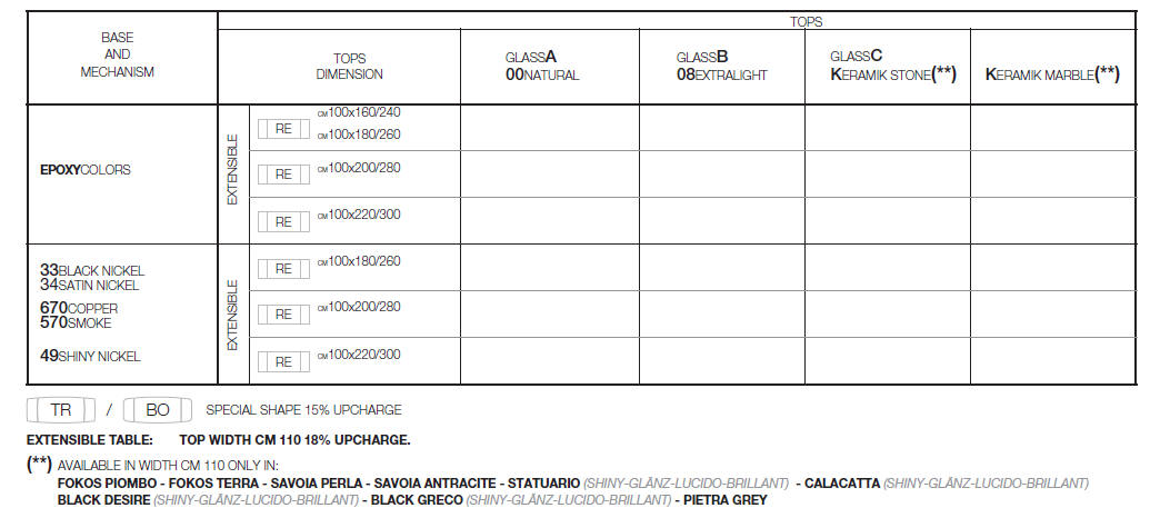 - 220-300x100xh75 cm cena od 26 513 zł brutto (dotyczy wariantu: podstawa metalowa i mechanizm basiccolor; blat i wkładka rozszerzająca szkło 00 natural)