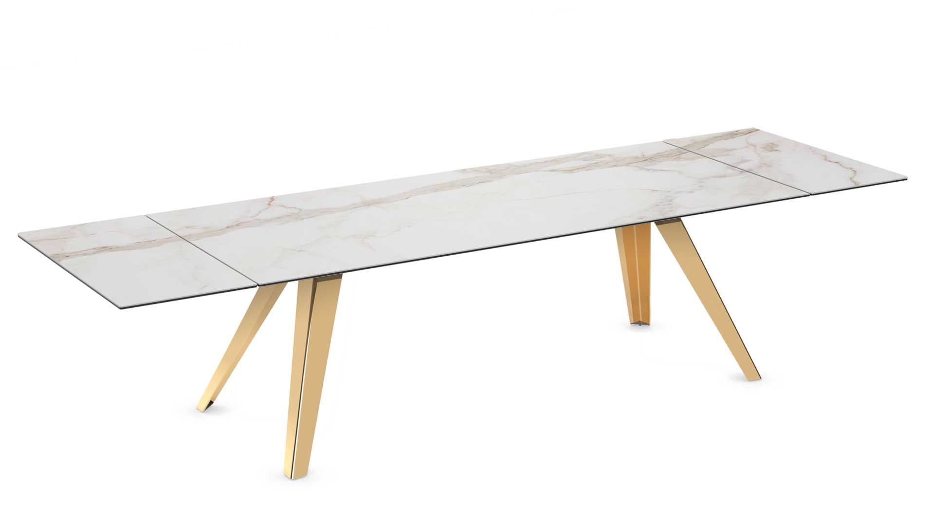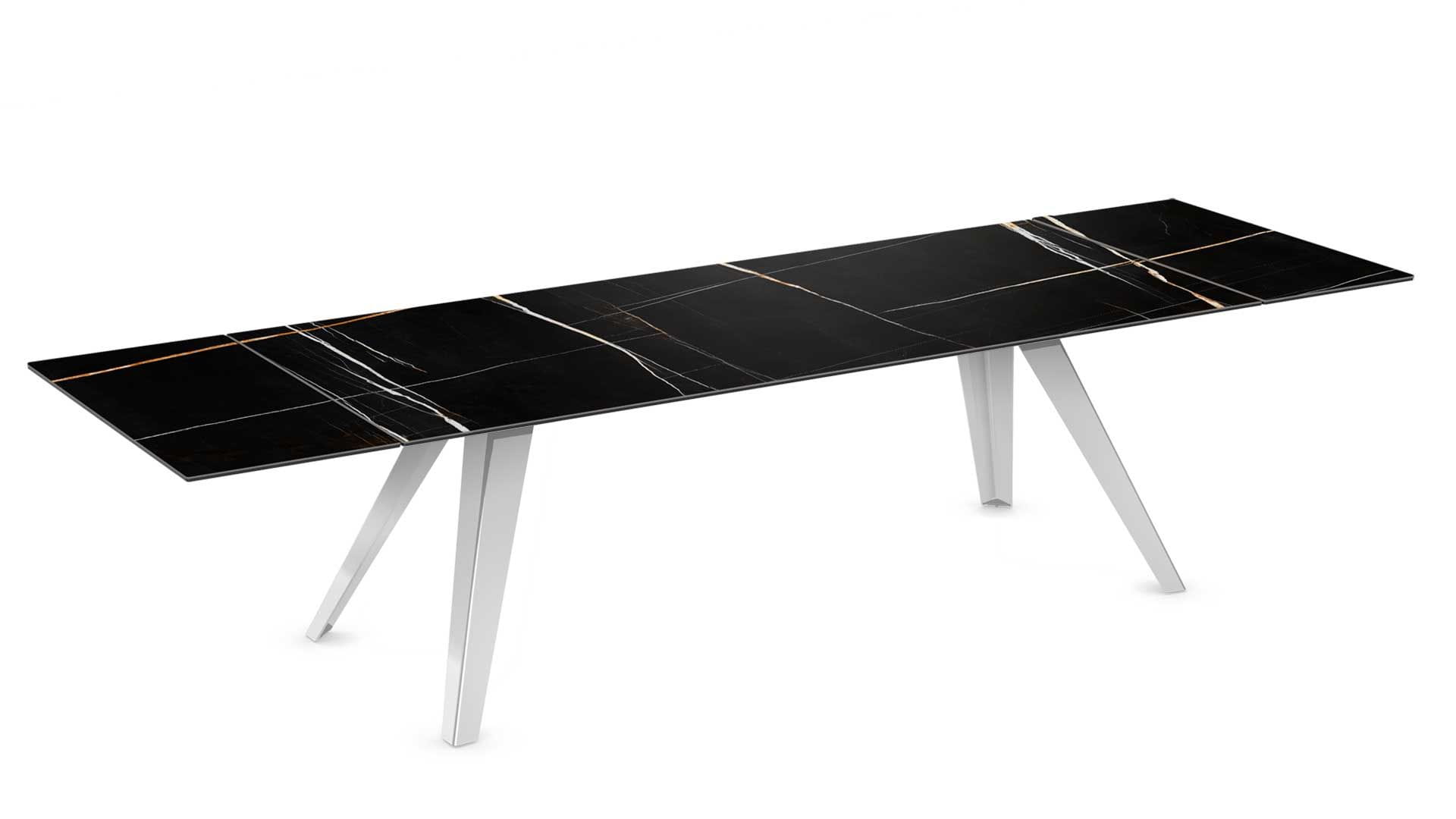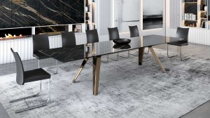 Stół EQUUS - stół o intrygującym designie; bardzo duże rozmiary, idealny stół dla licznej rodziny, jak również świetny stół konferencyjny; podstawa szklana, ceramiczna,marmurowa; blat szkło, szkło lakierowane, blat ceramiczny lub marmurowy. Unikalny mechanizm rozkładający.