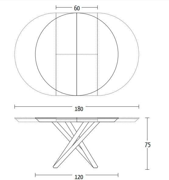 - wymiary: fi120xh75 po rozłożeniu: 180x120xh75 cena od 7 727 zł brutto (dotyczy modelu z blatem melamina);