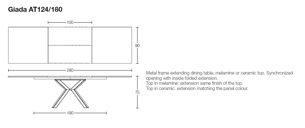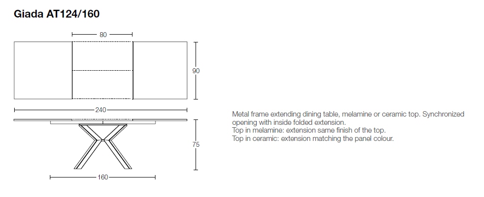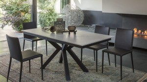 Nowoczesny włoski stół GIADA - stół w wersji rozkładanej; podstawa metalowa o nowoczesnej linii; blat ceramiczny lub laminowany melaminą; dostępne trzy rozmiary.