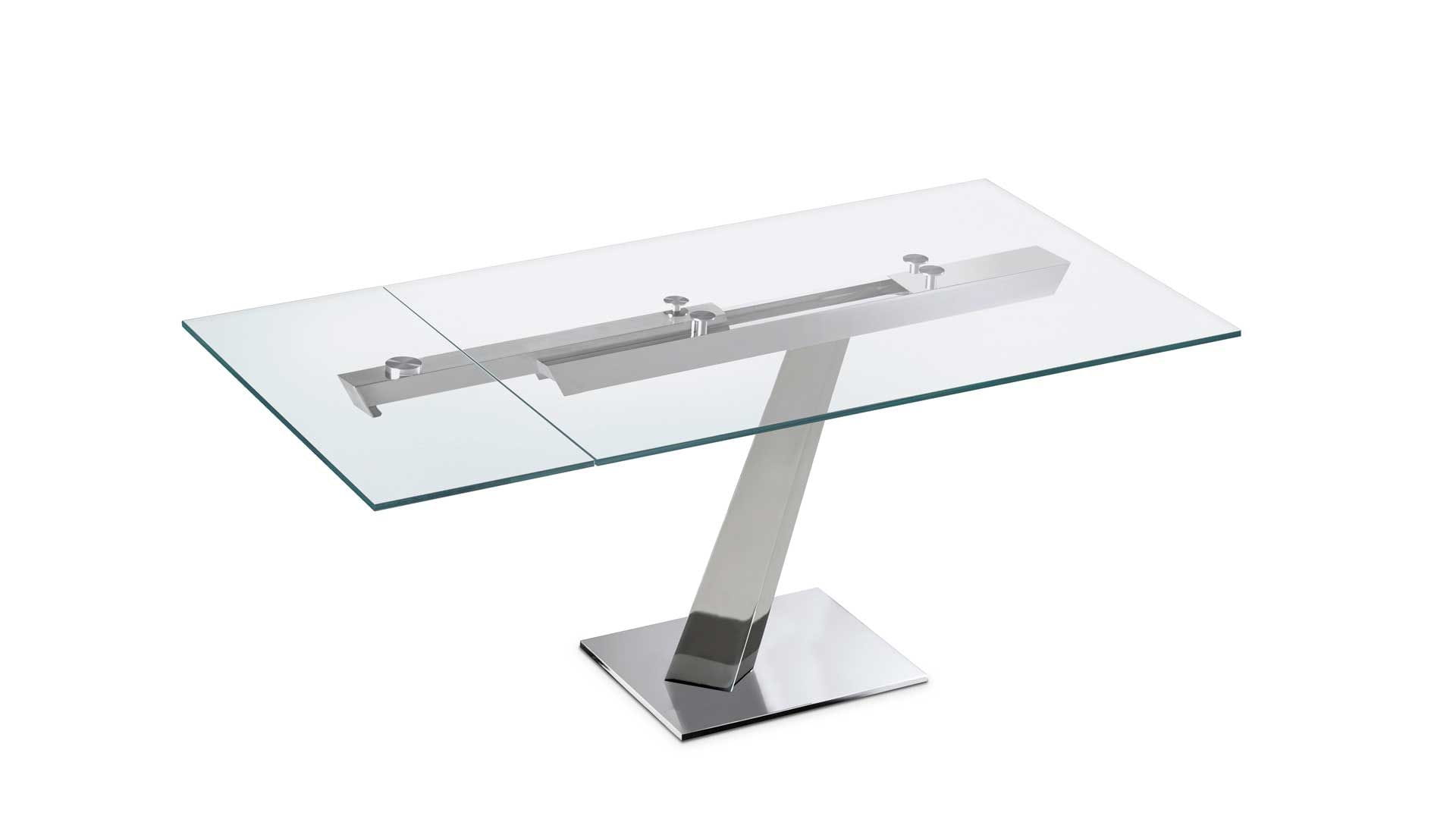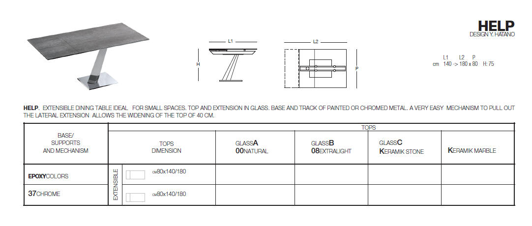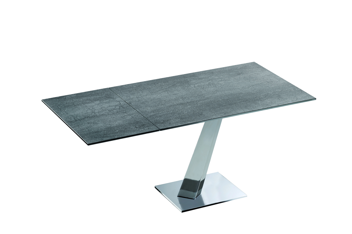 Designerski włoski stół HELP - stół o wyjątkowym designie; podstawa metalowa; blat i wkładka rozszerzająca szklane lub ceramiczne. Unikalny mechanizm rozkładający.