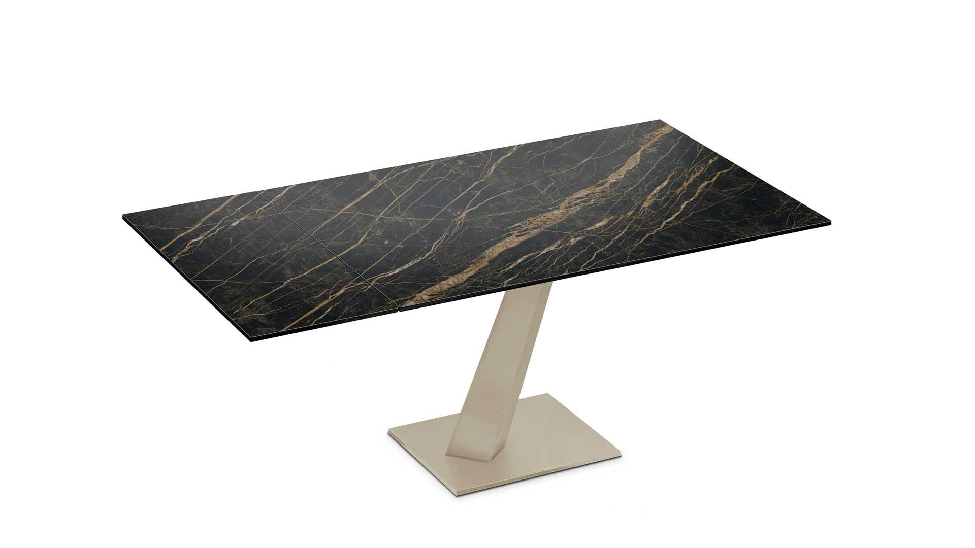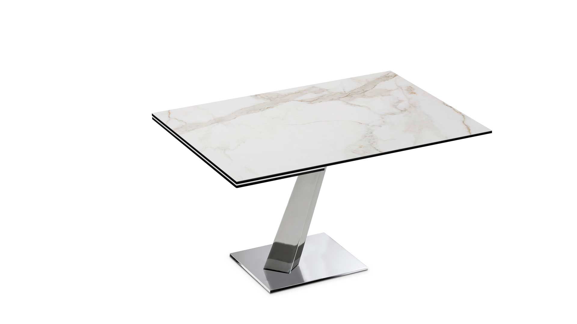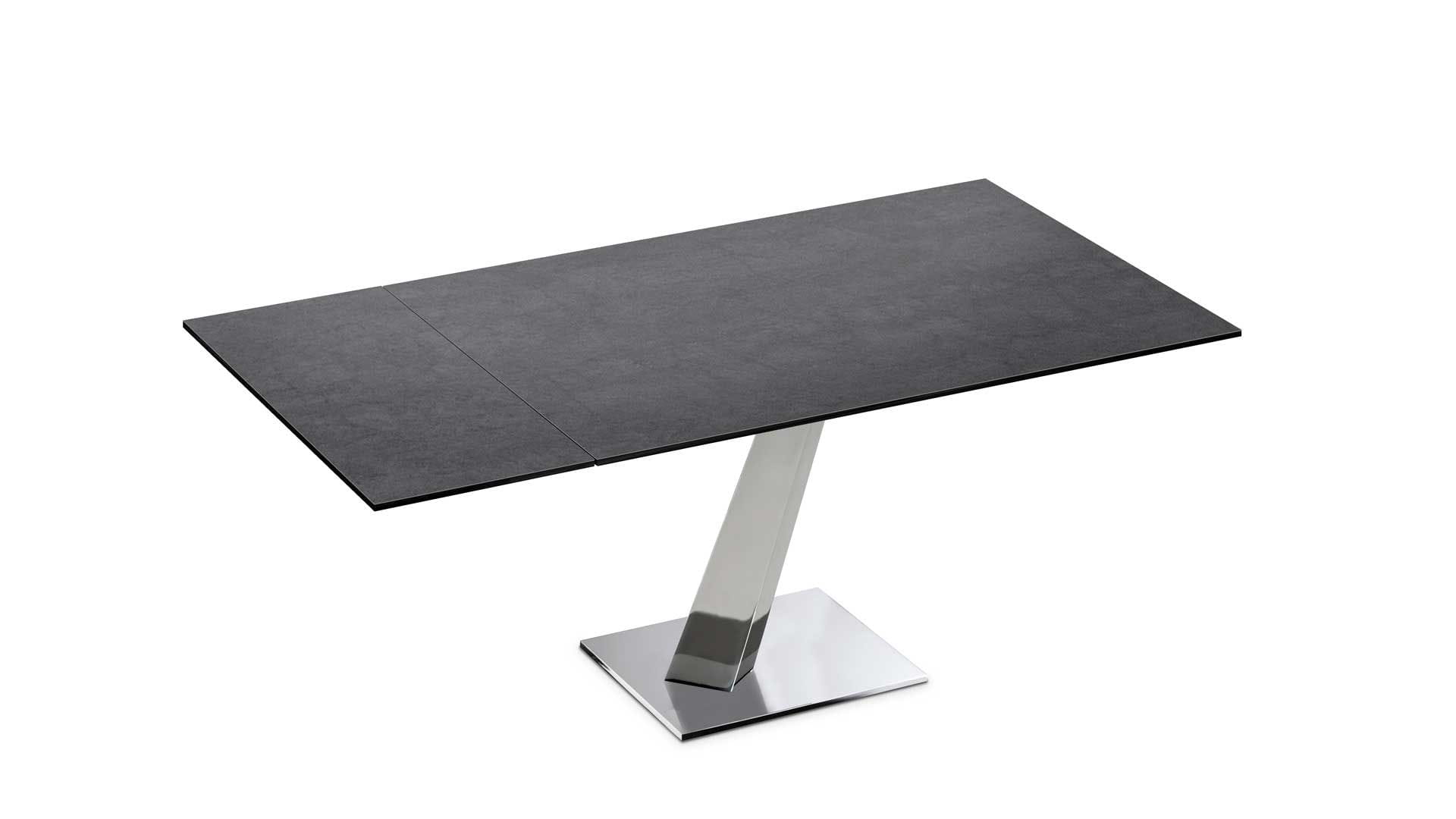 Designerski włoski stół HELP - stół o wyjątkowym designie; podstawa metalowa; blat i wkładka rozszerzająca szklane lub ceramiczne. Unikalny mechanizm rozkładający.