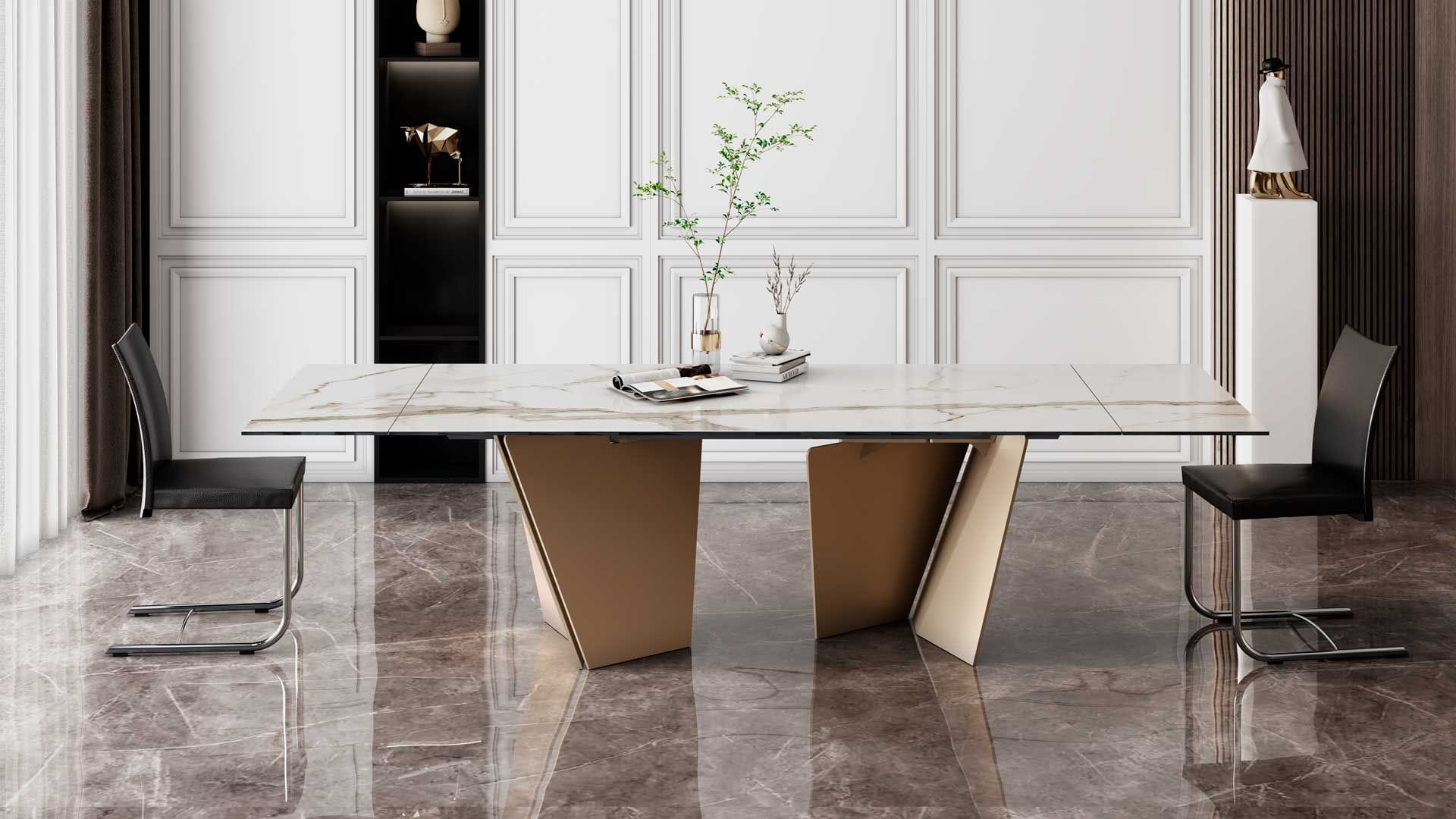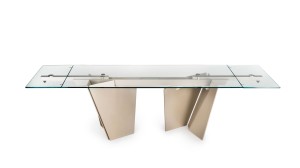 Designerski włoski stół LASTRE - stół o intrygującym designie; podstawa lakierowana stal; blat szkło, szkło lakierowane, blat ceramiczny lub marmurowy. Unikalny mechanizm rozkładający. Dostępna wersja rozkładana i nierozkładana.