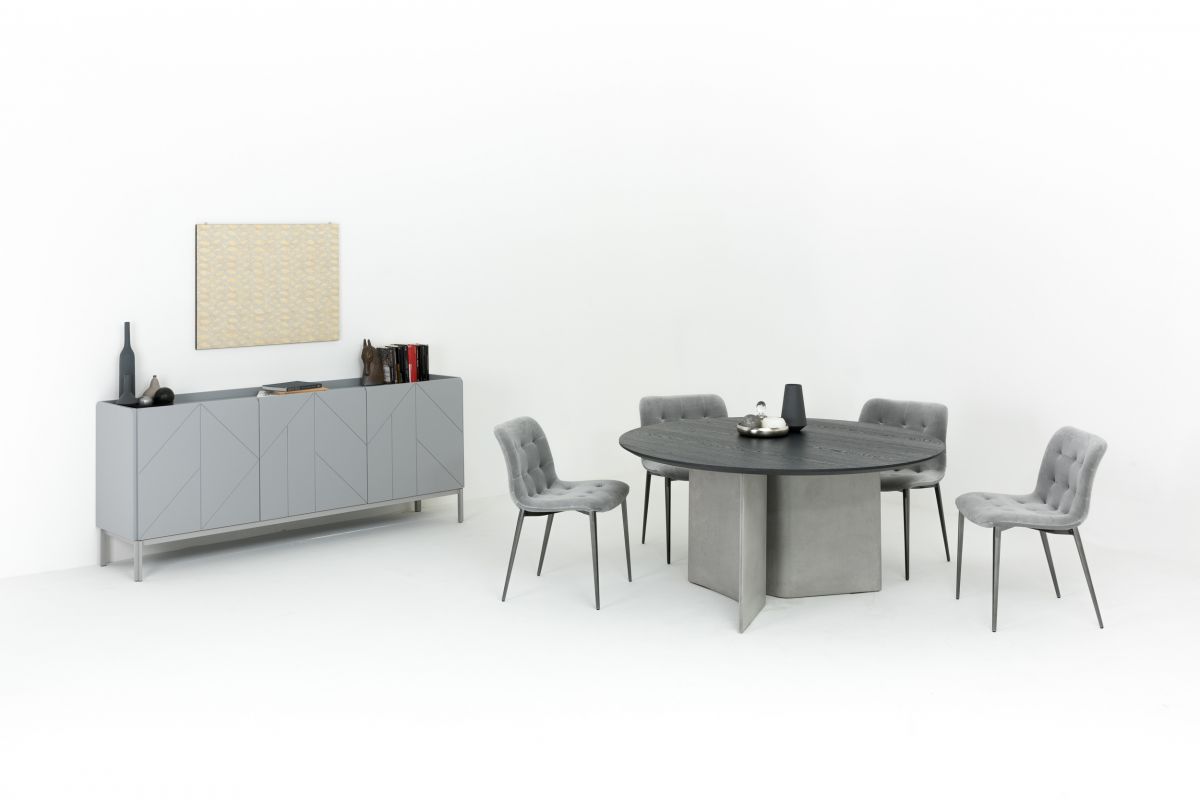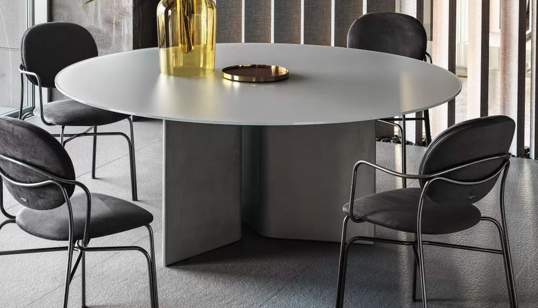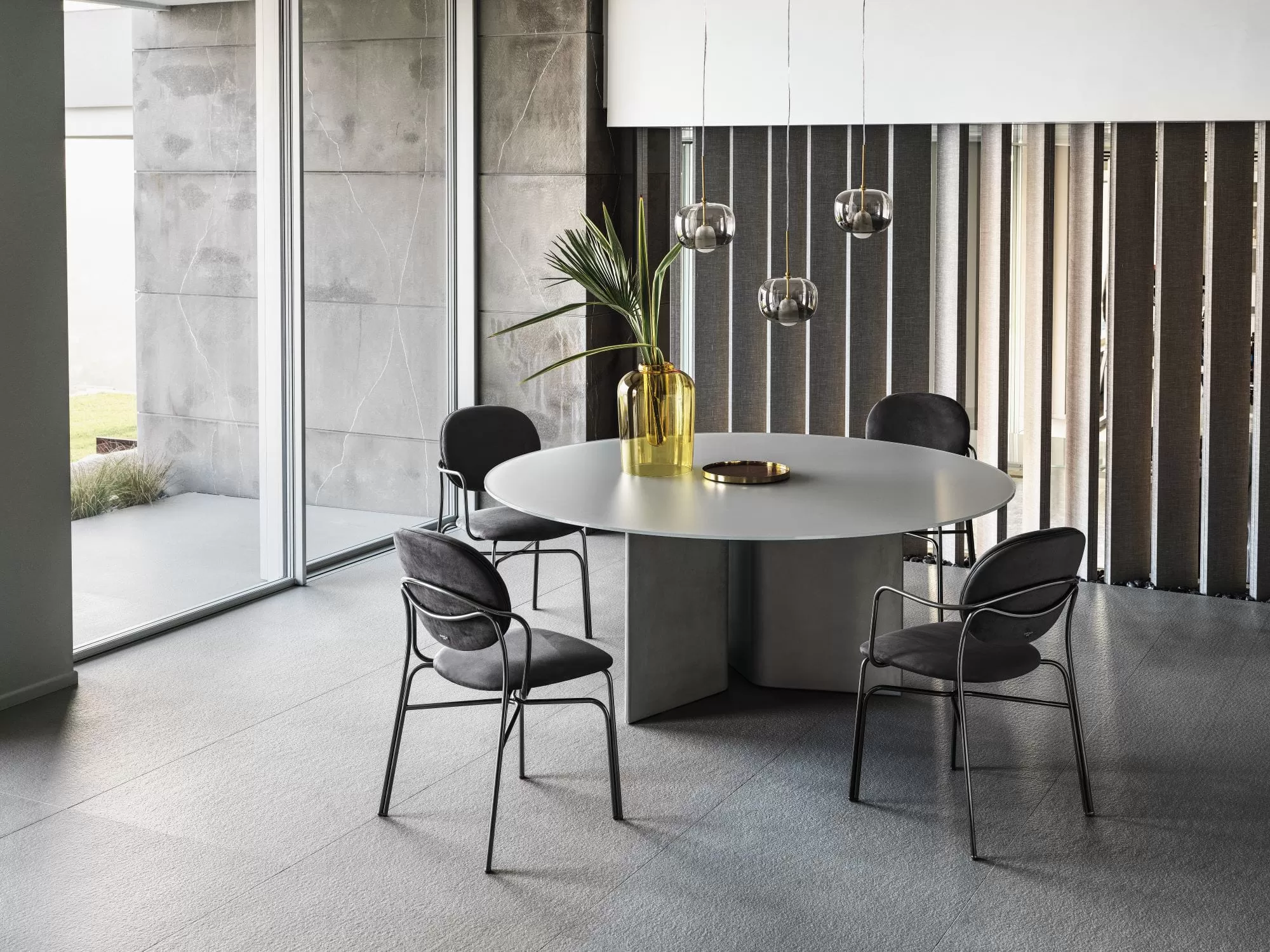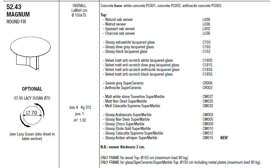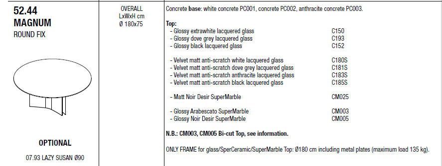 Stół włoski MAGNUM - stół nierozkładany, okrągły; stół jest dostępny w 2 rozmiarach; Stół polecany do nowoczesnych jadalni jak i kuchni. Podstawa betonowa w trzech kolorach. Blat z najwyższej jakości drewna fornirowanego, szkła, akrylowego szkła matowego, SuperMarble. Stół dodatkowo można wyposażyć w tacę obrotową.