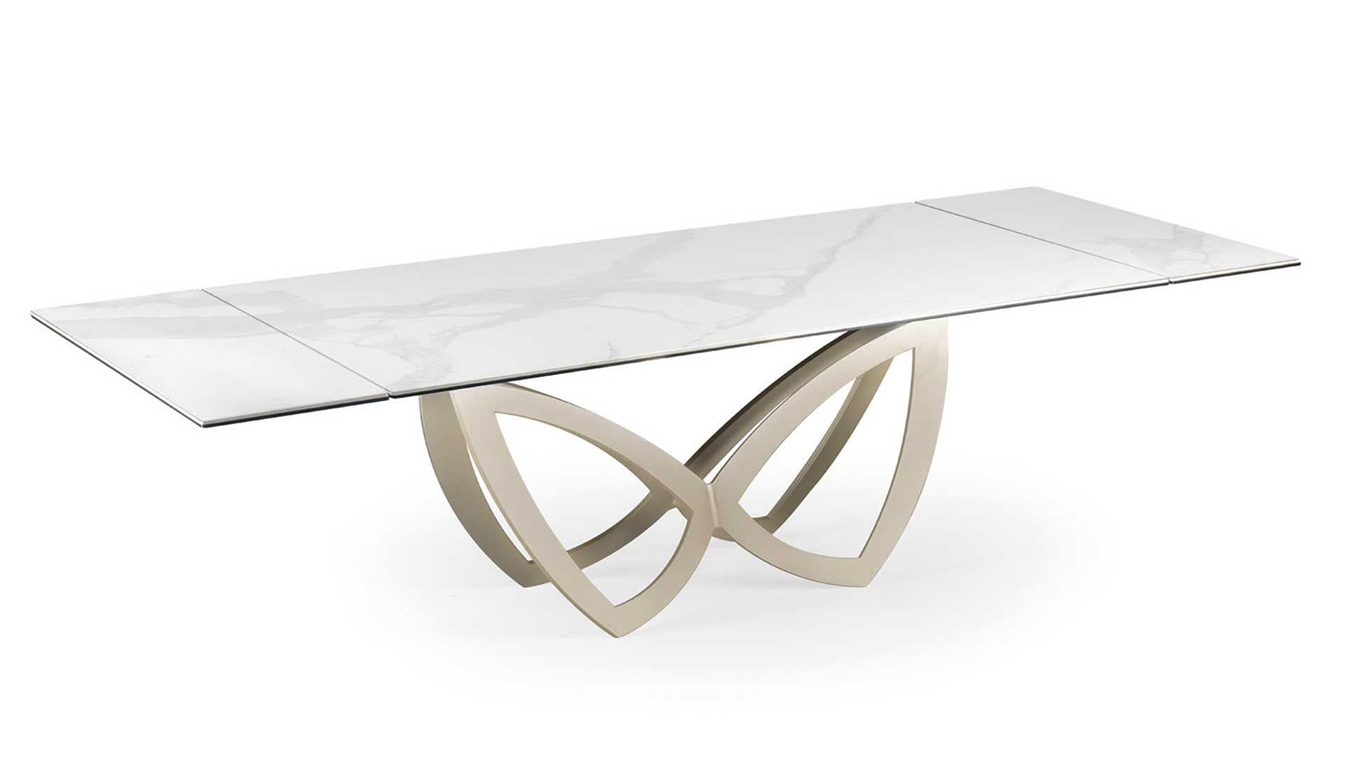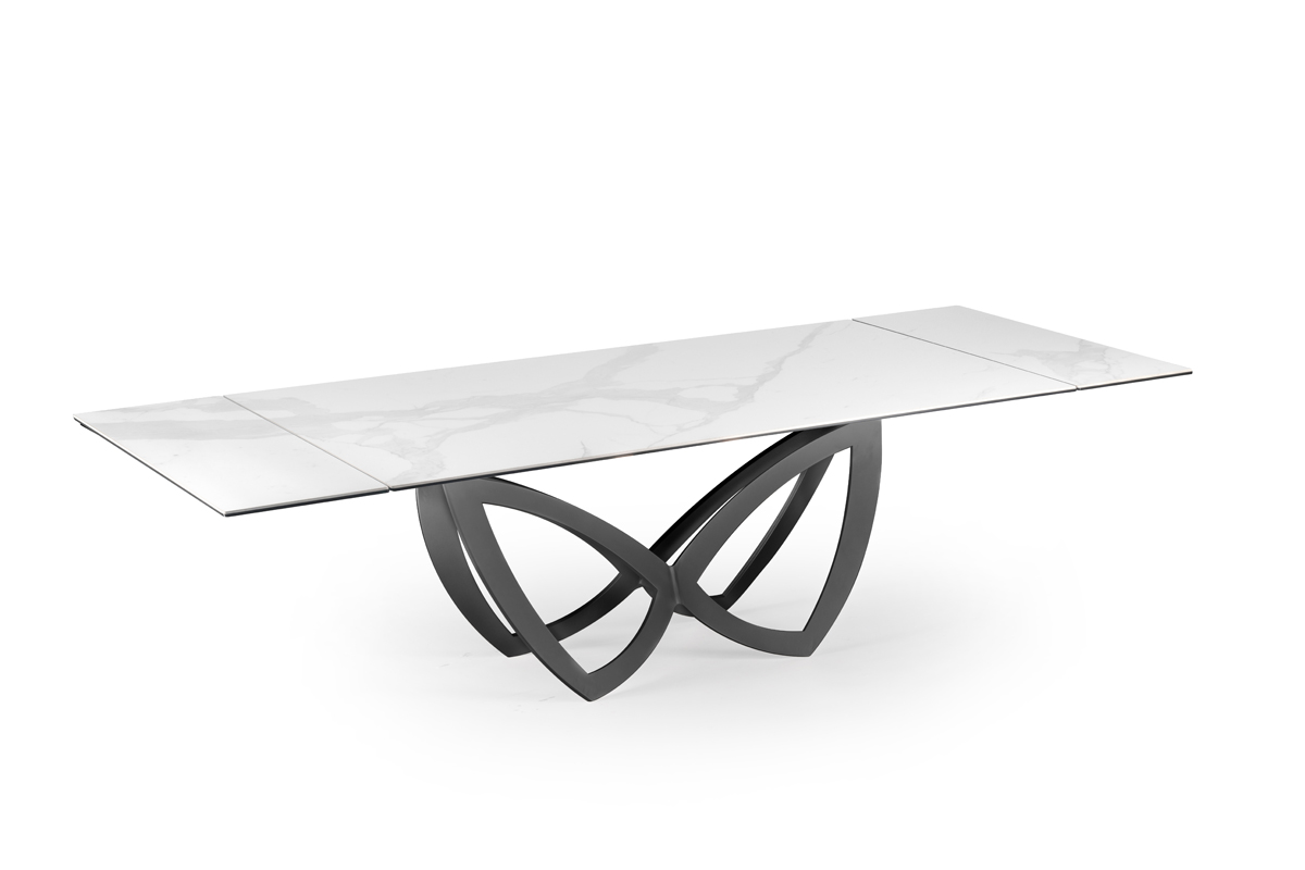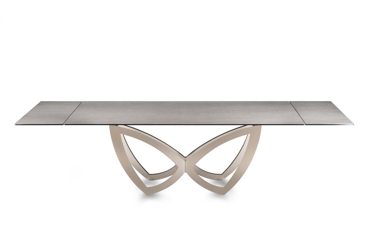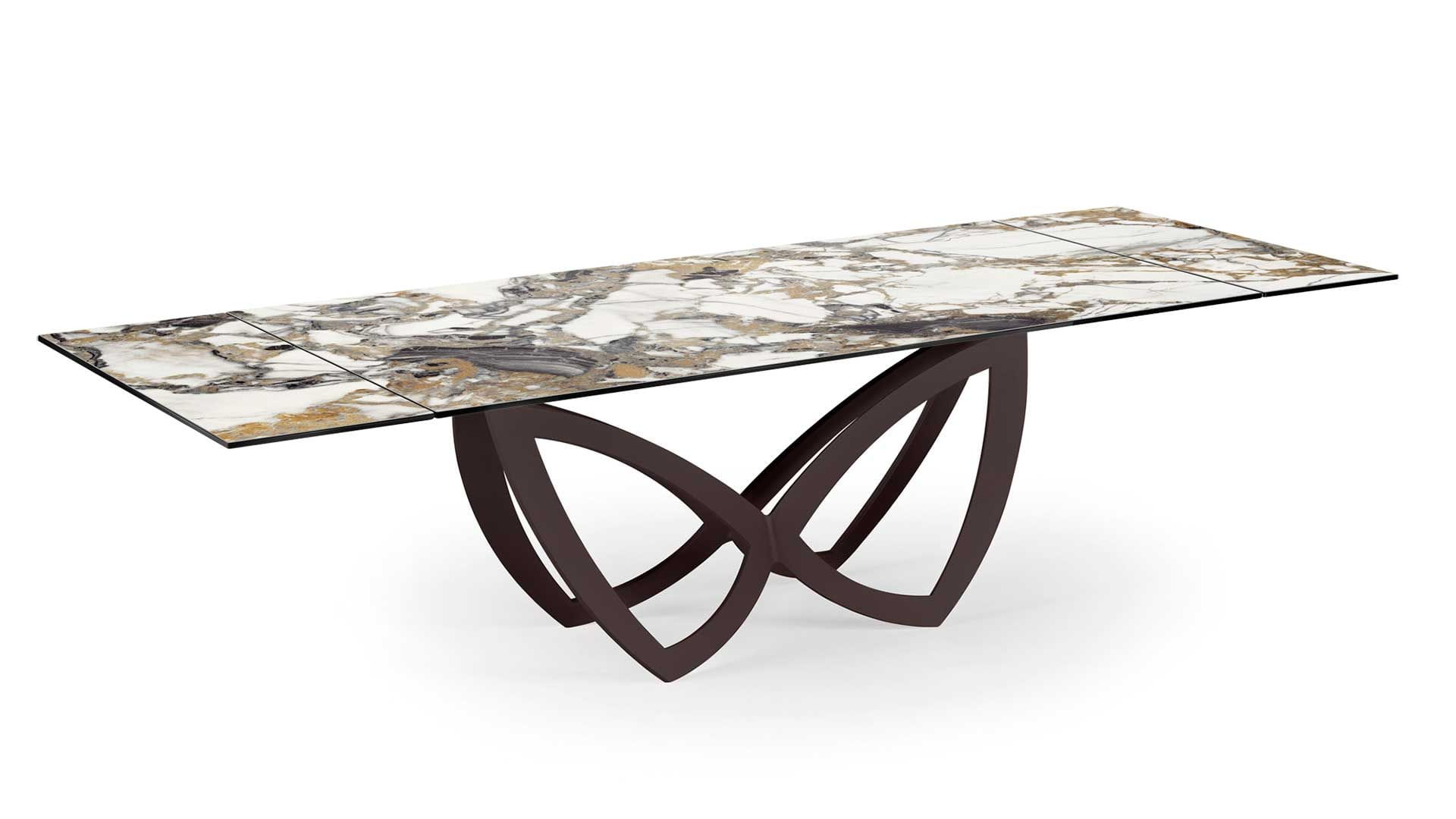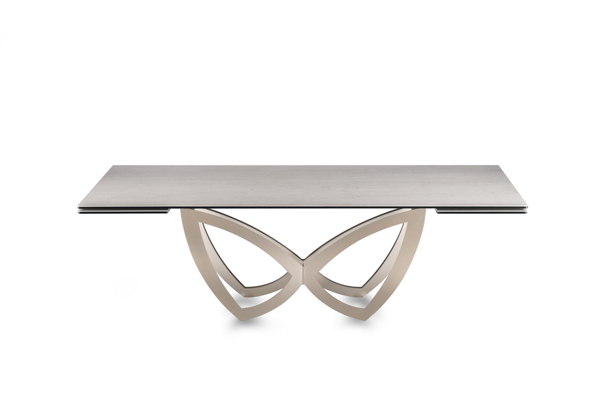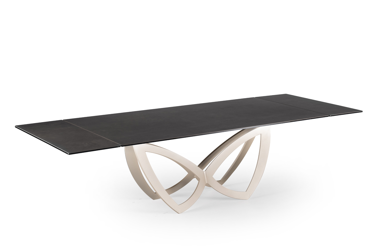 Designerski włoski stół PAR PAR - stół o wyjątkowym designie; podstawa metalowa; blaty i wkładka rozszerzająca szklane lub ceramiczne. Unikalny mechanizm rozkładający. Stół dostępny w wersji rozkładanej i nierozkładanej.