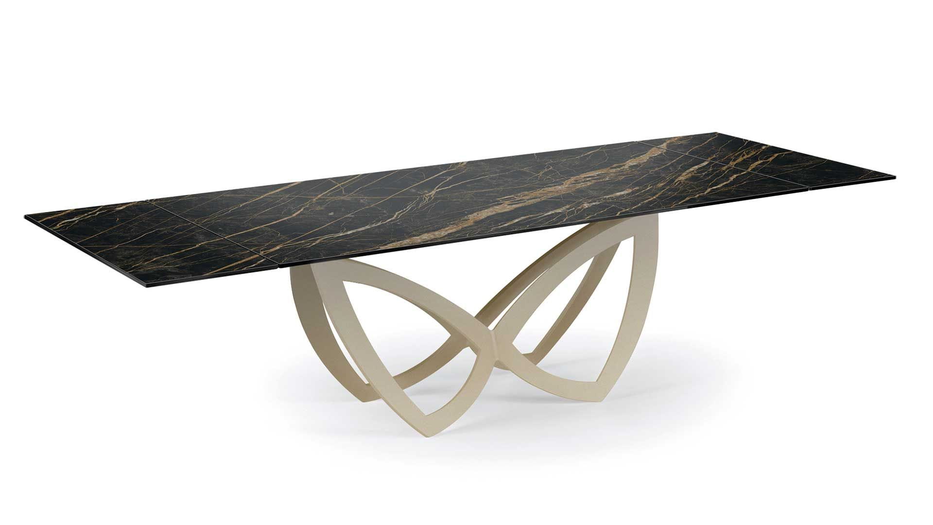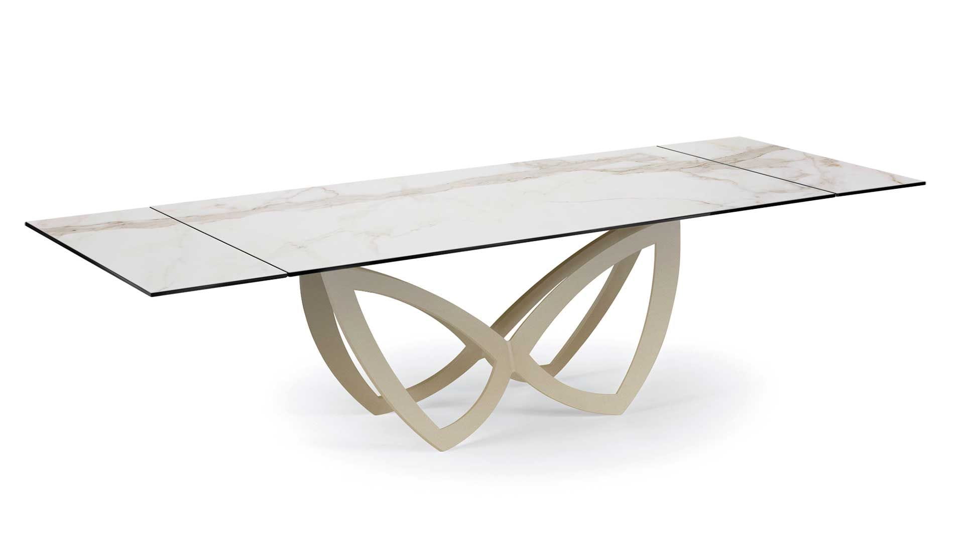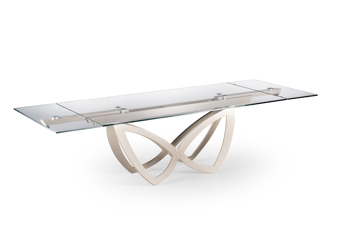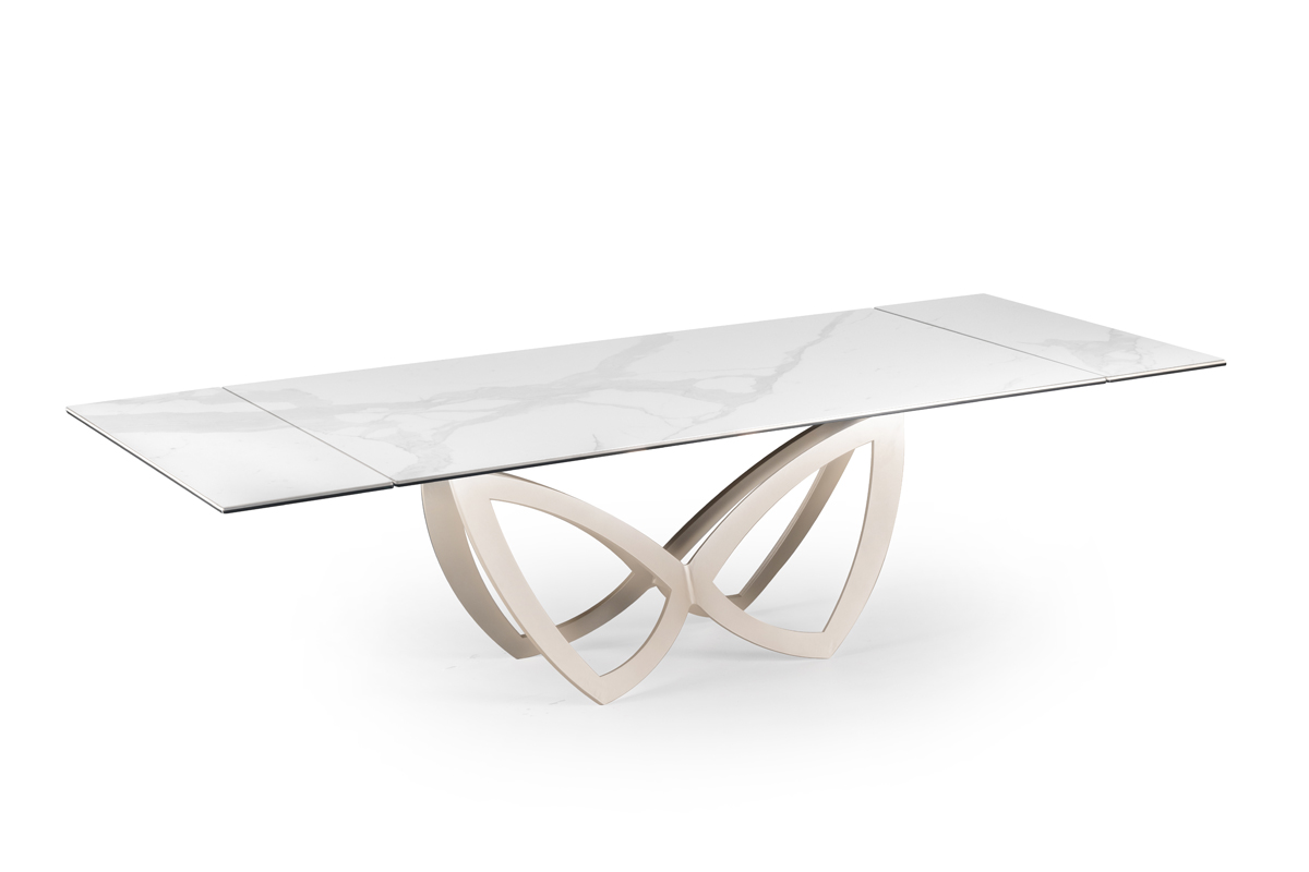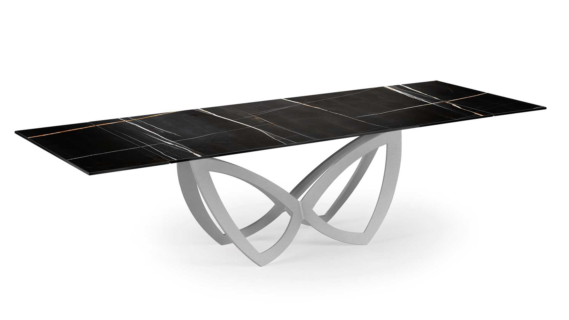 Designerski włoski stół PAR PAR - stół o wyjątkowym designie; podstawa metalowa; blaty i wkładka rozszerzająca szklane lub ceramiczne. Unikalny mechanizm rozkładający. Stół dostępny w wersji rozkładanej i nierozkładanej.