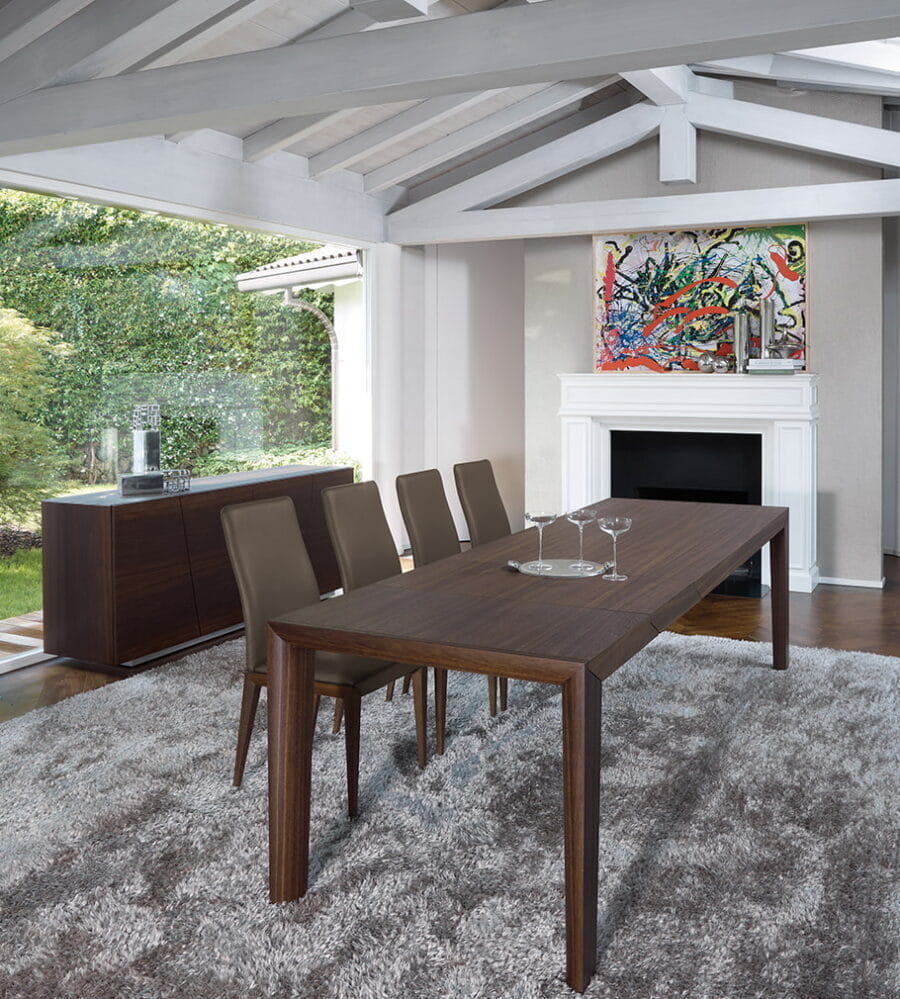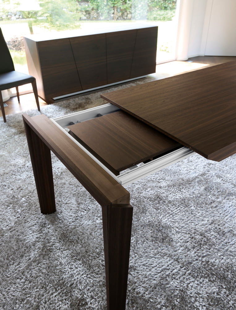 Stół PATRIK - nowoczesny, włoski stół rozkładany; blat, podstawa i wkładki rozszerzające fornirowane w kilku kolorach.