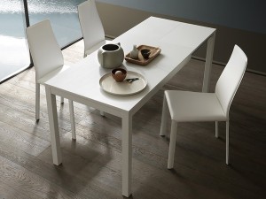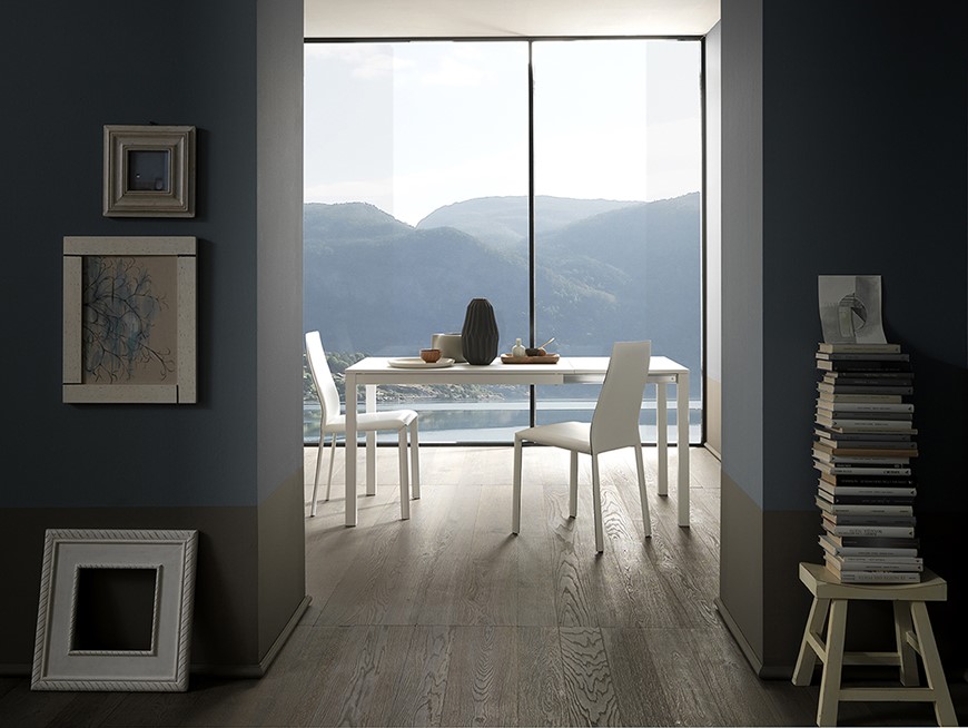 Nowoczesny włoski stół STORM - stół o prostej, klasycznej konstrukcji; metalowa podstawa dostępna w 6 kolorach; dostępne dwa rozmiary stołu; blat: Melamine, Glass.