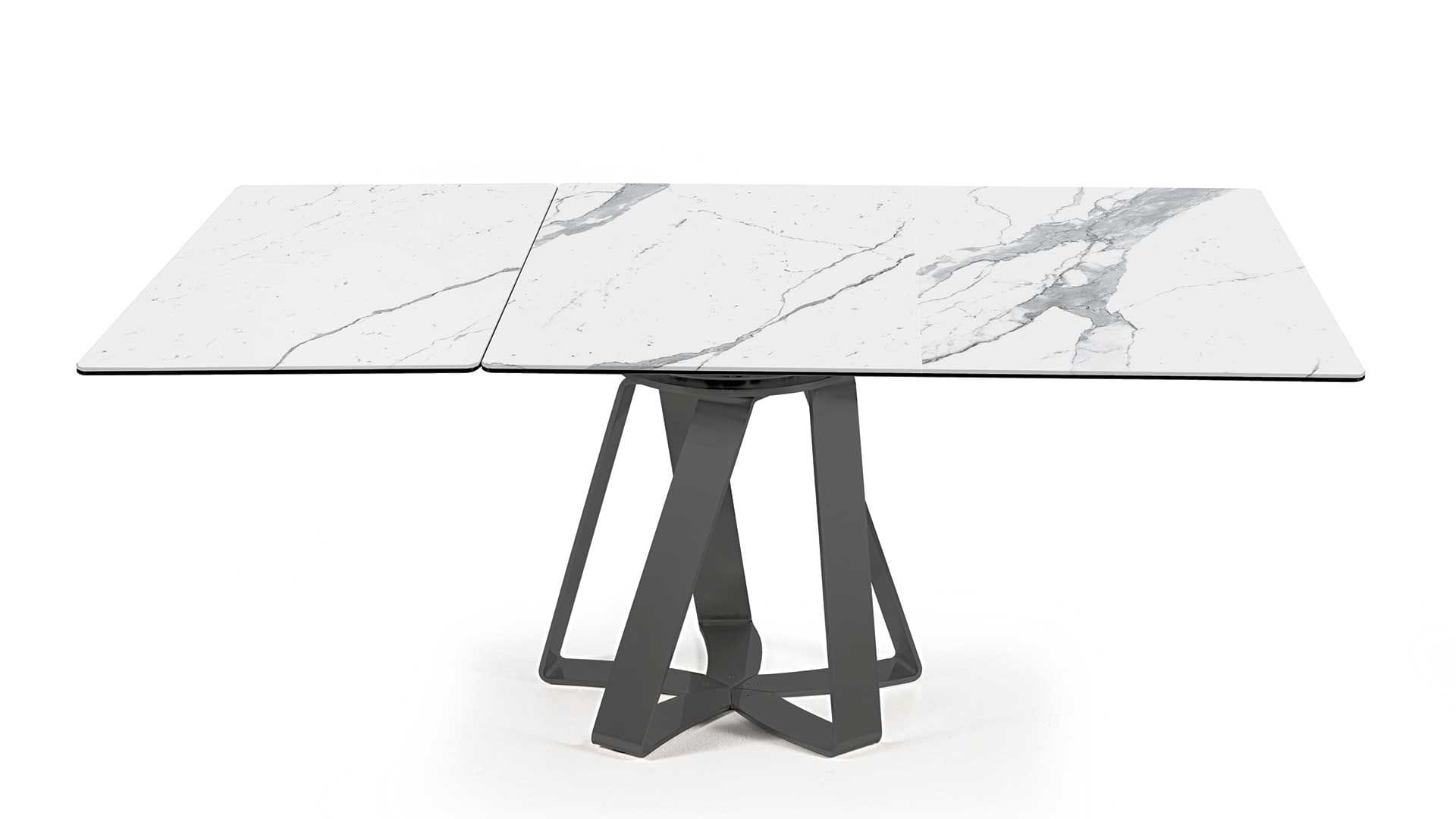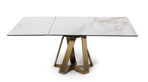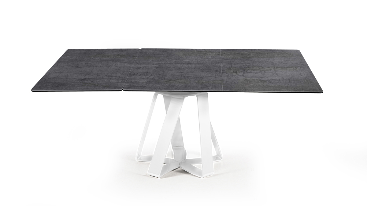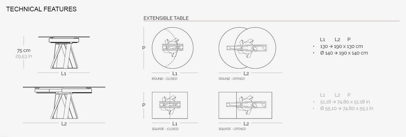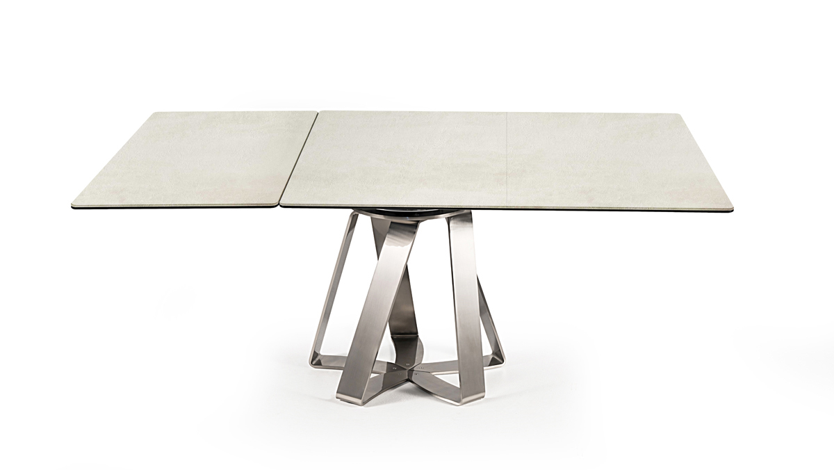 Designerski włoski stół TURNING - stół o intrygującym designie; podstawa lakierowana stal, chrom lub sati nikiel; blat szkło, szkło lakierowane lub blat ceramiczny. Oryginalny mechanizm rozkładania pozwalający na proste rozkładanie stołu poprzez obrót centralnej części. Dostępne dwa modele stołu.