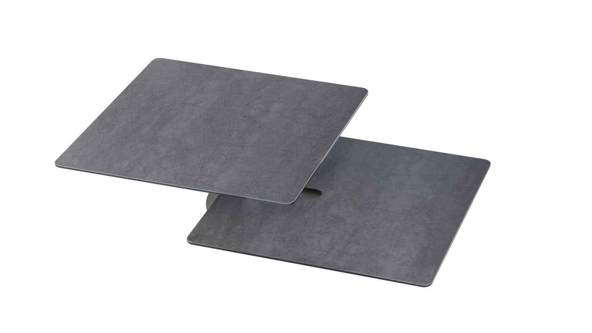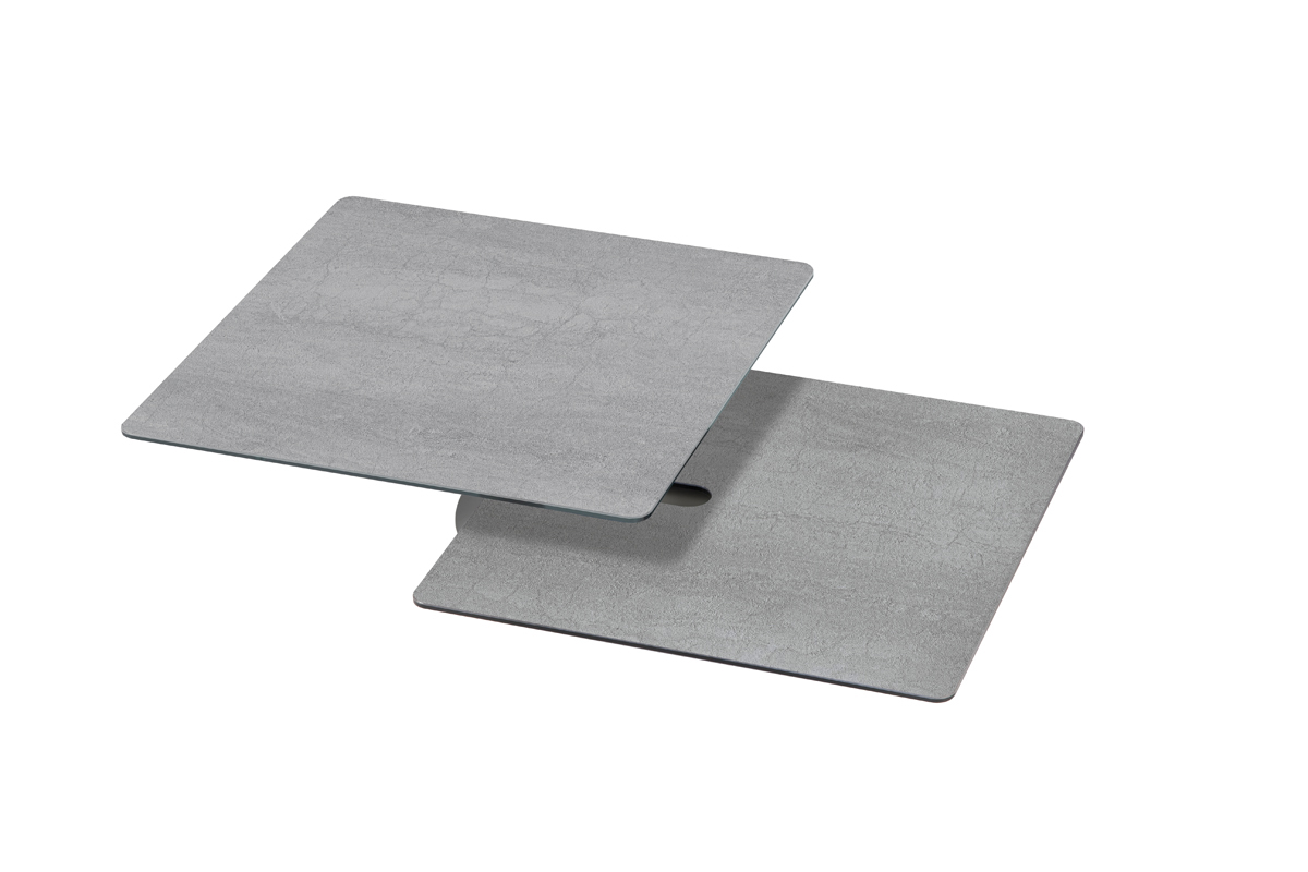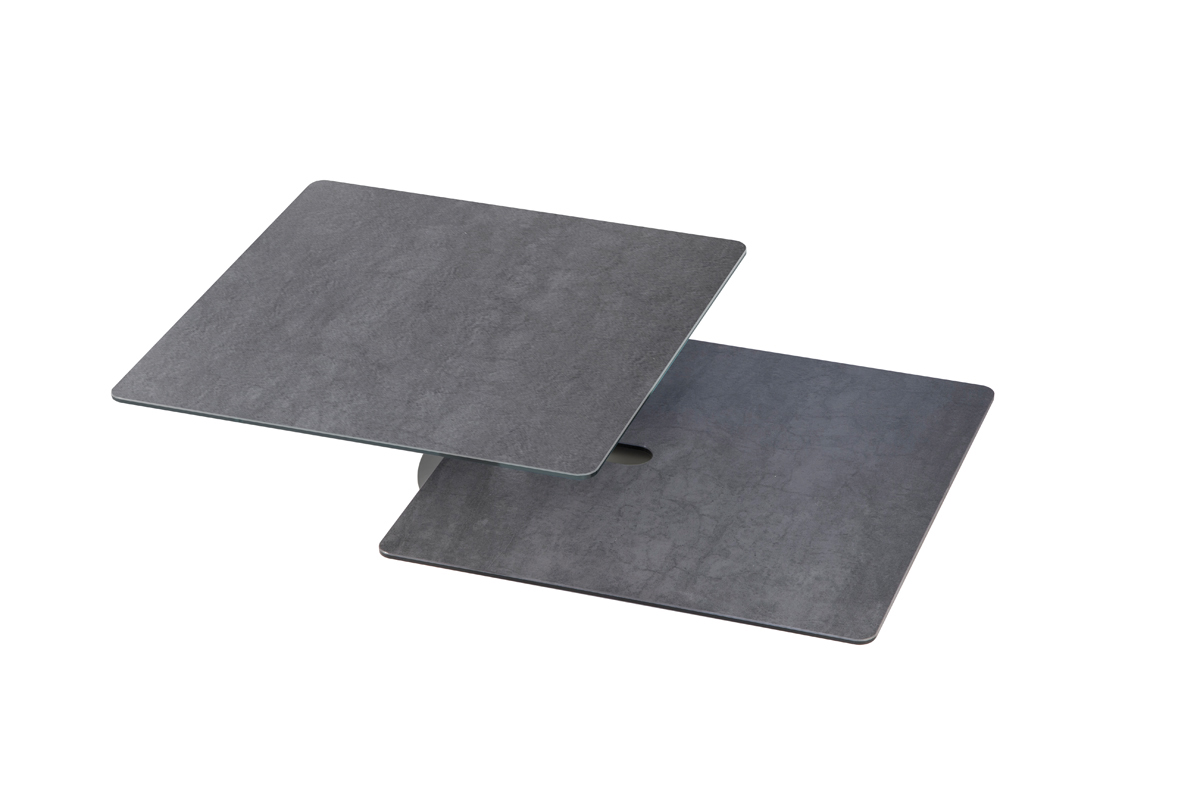 Designerski włoski stolik kawowy AMARCORD - stolik o intrygującym designie; kolumna metalowa; blat dolny ceramiczny; blat górny szkło lub ceramiczne. Unikalny mechanizm rozkładający.