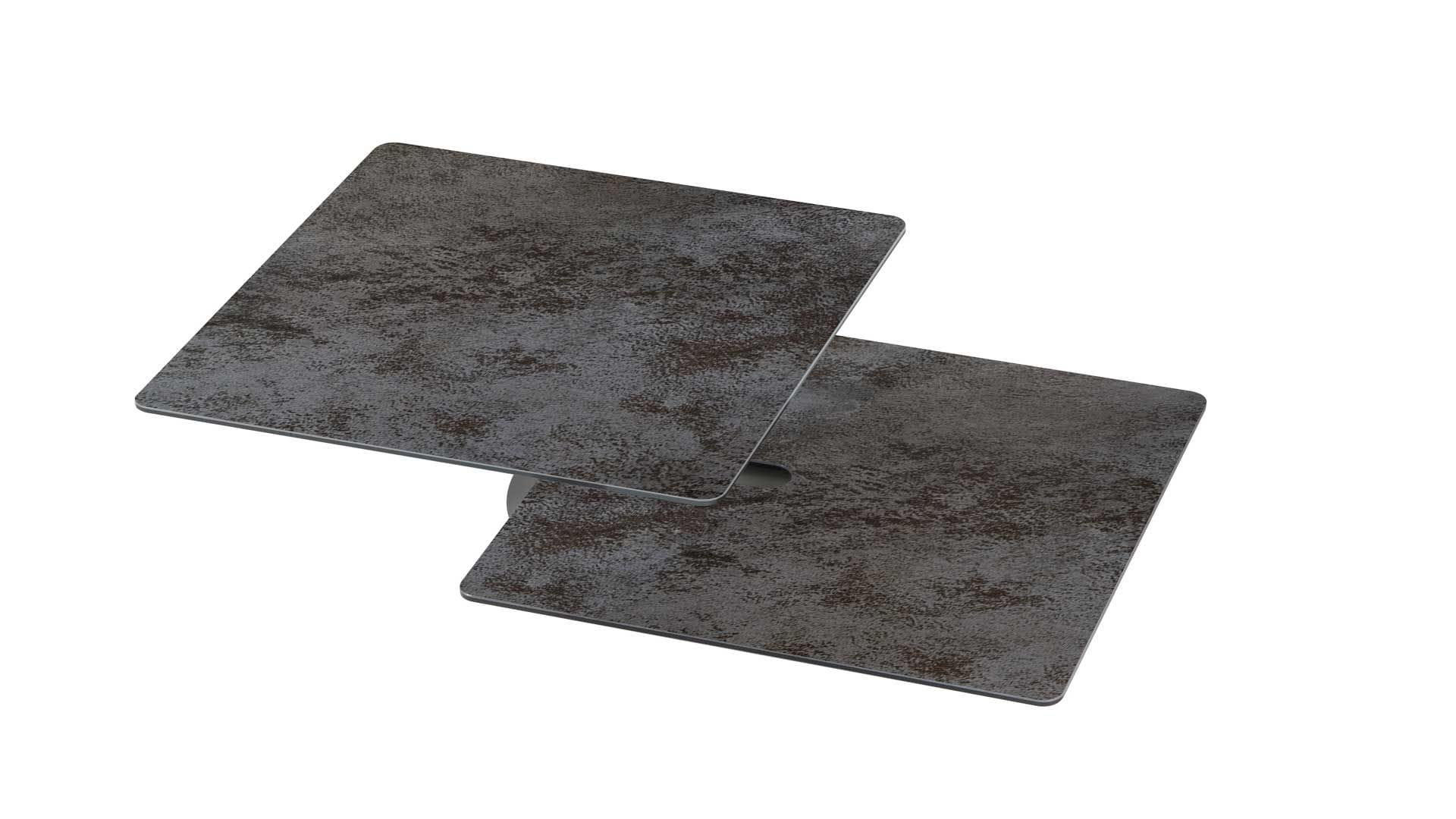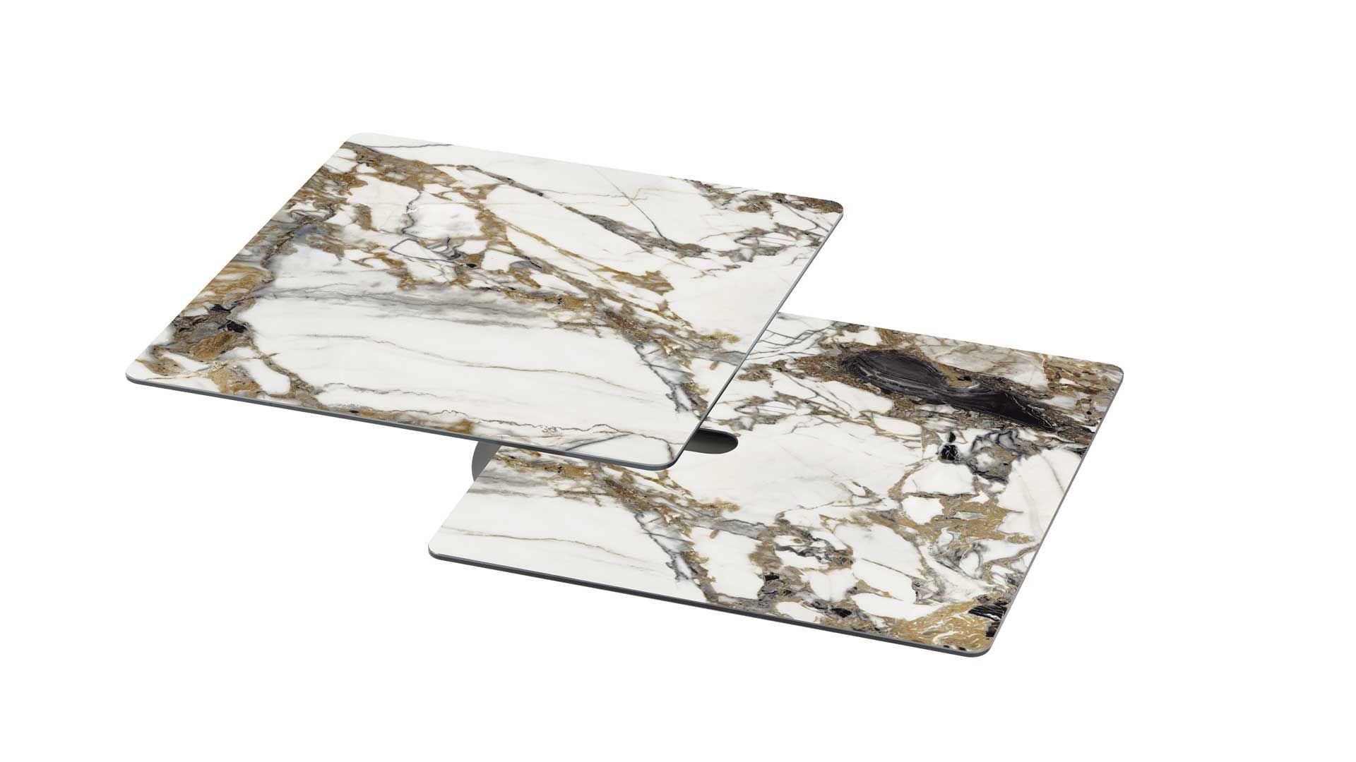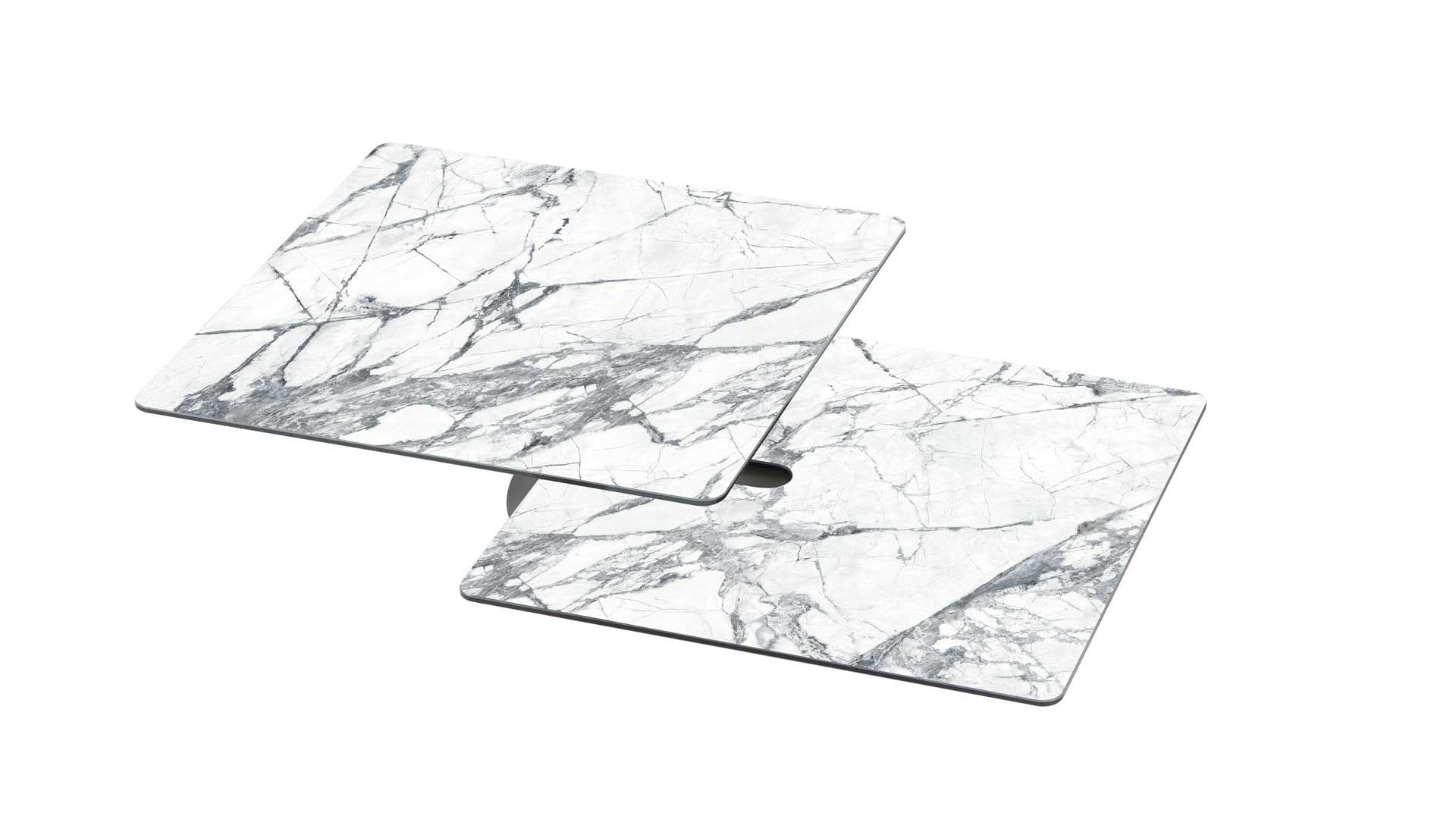 Designerski włoski stolik kawowy AMARCORD - stolik o intrygującym designie; kolumna metalowa; blat dolny ceramiczny; blat górny szkło lub ceramiczne. Unikalny mechanizm rozkładający.