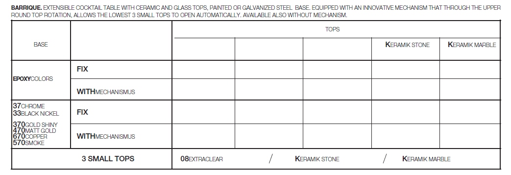 Klientów zainteresowanych wyceną modelu BARRIQUE prosimy o przesłanie na nasz adres email (twoje@luxmeble.eu) wybrane opcje stolika: