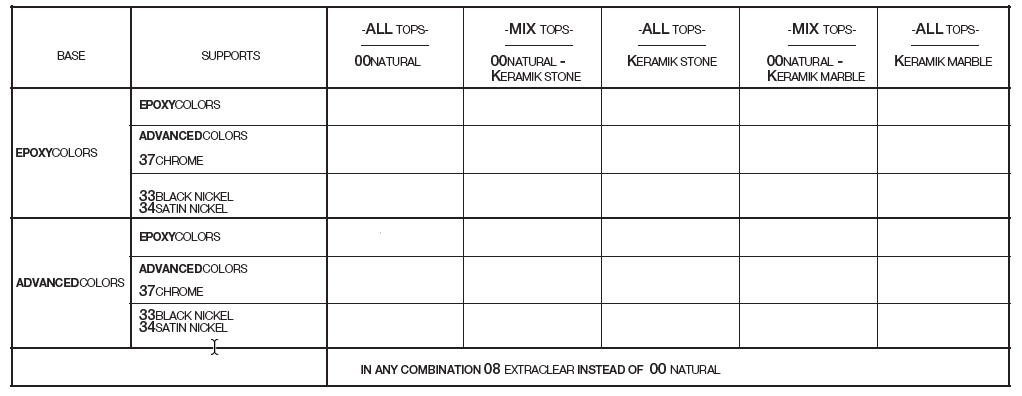 - kolor górnego blatu,