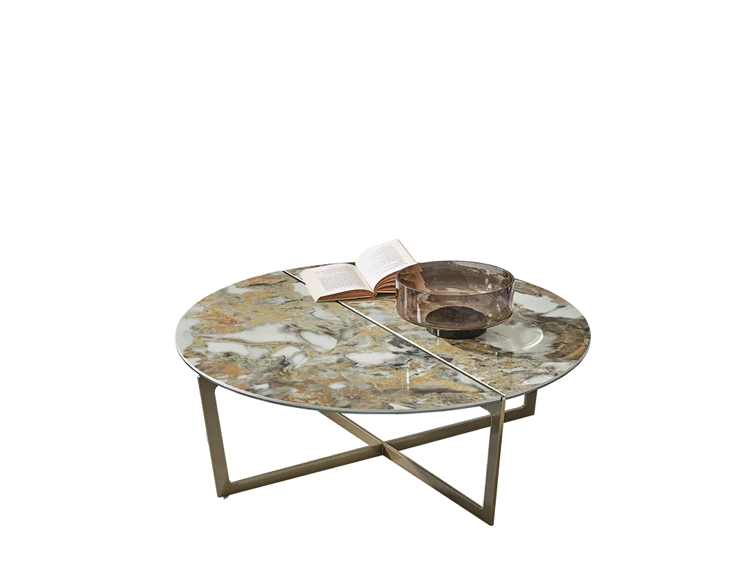 Stolik kawowy CROSS - nowoczesny stolik o interesującej stylistyce; stolik jest dostępny w czterech rozmiarach; jeden model okrągły i trzy rozmiary elipsy; metalowa, stabilna podstawa; blat szklany, ceramiczny lub marmurowy.