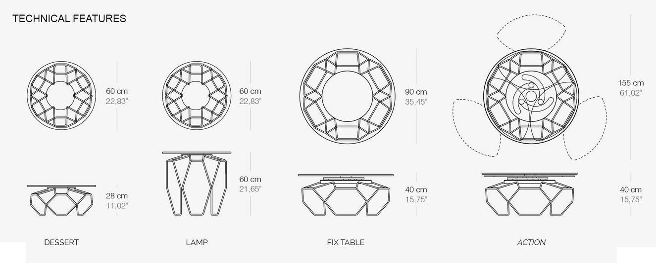 Stolik kawowy HIVE - 4 modele - w kilku wariantach wykończenia - rozkładany, nierozkładany - oryginał NAOS.
