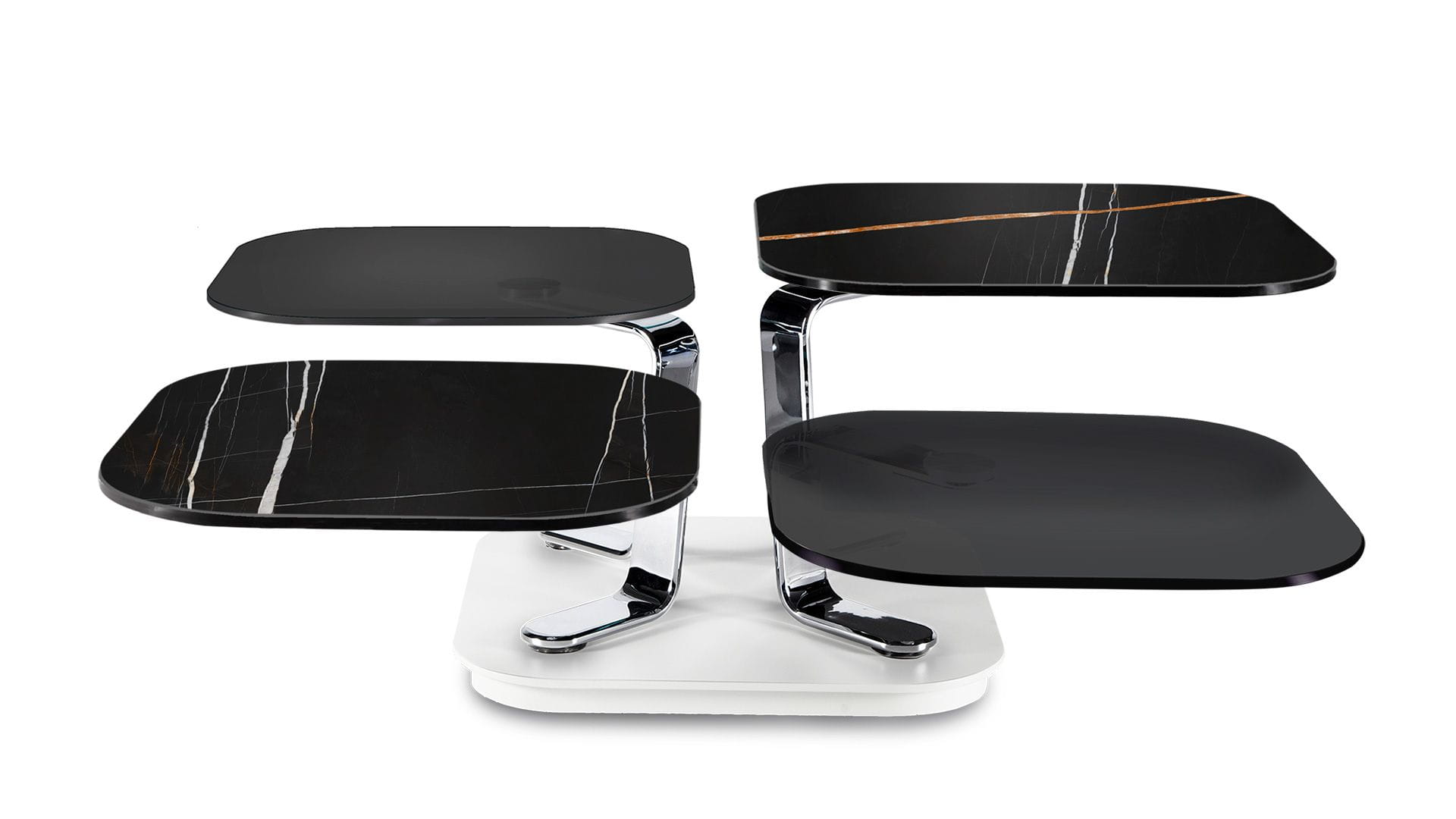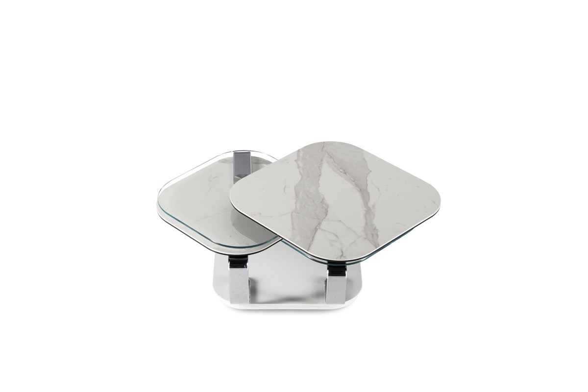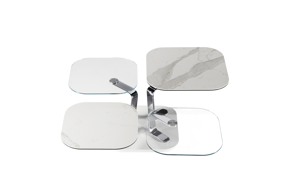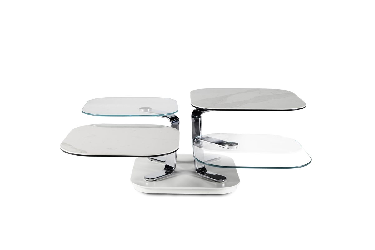 Designerski włoski stolik kawowy MADISON - stolik o intrygującym designie; podstawa metalowa; blaty szkło lub ceramiczne. Unikalny mechanizm rozkładający.