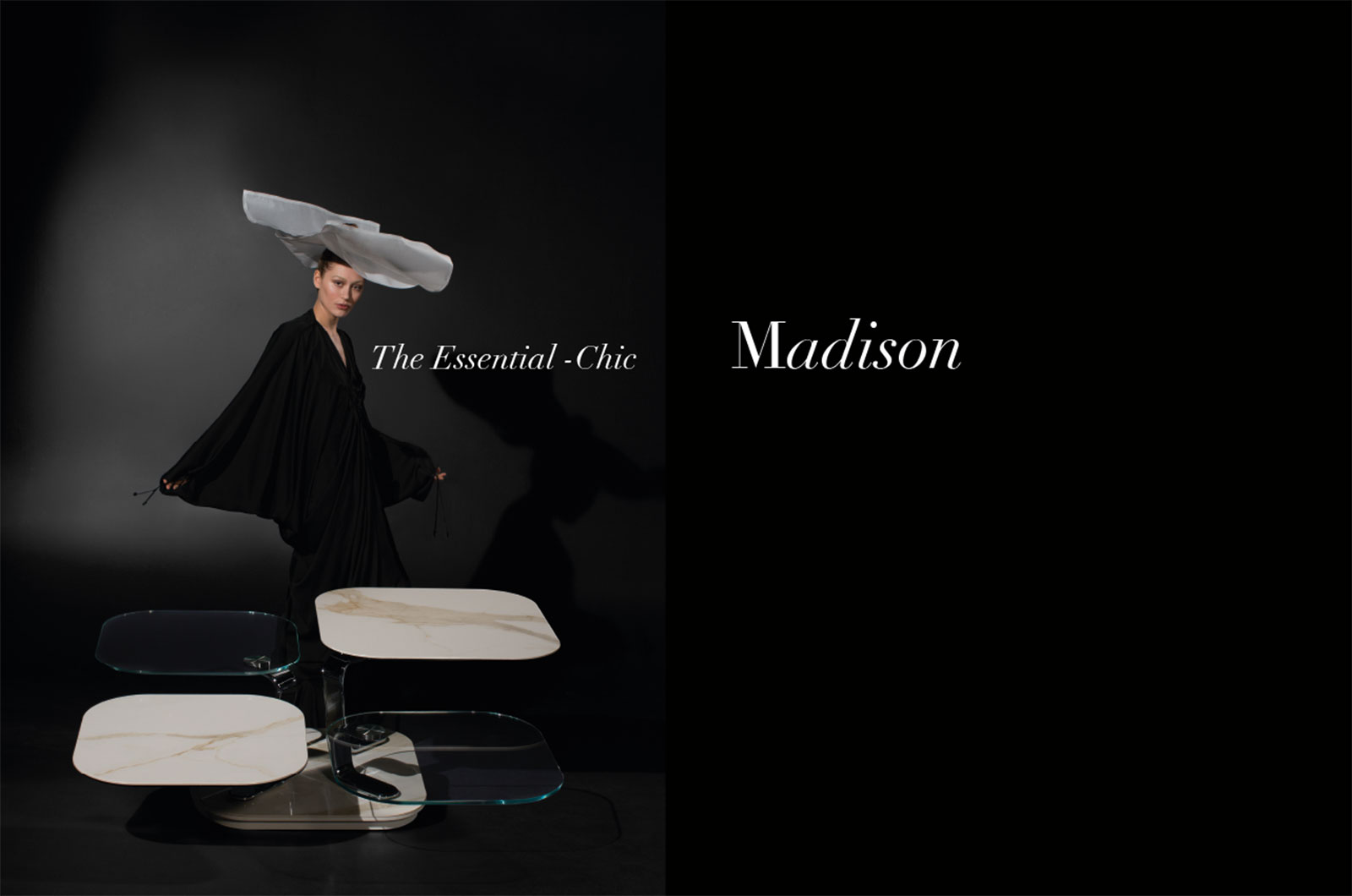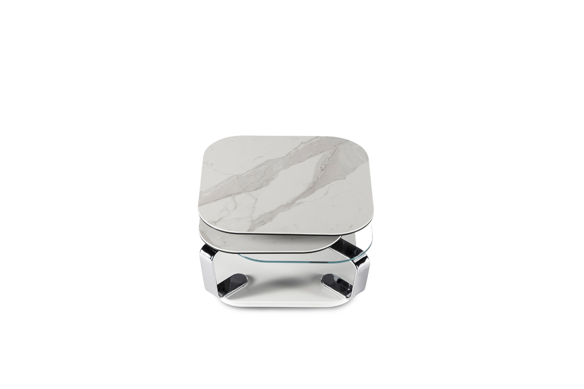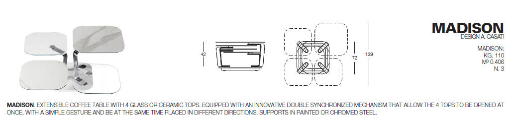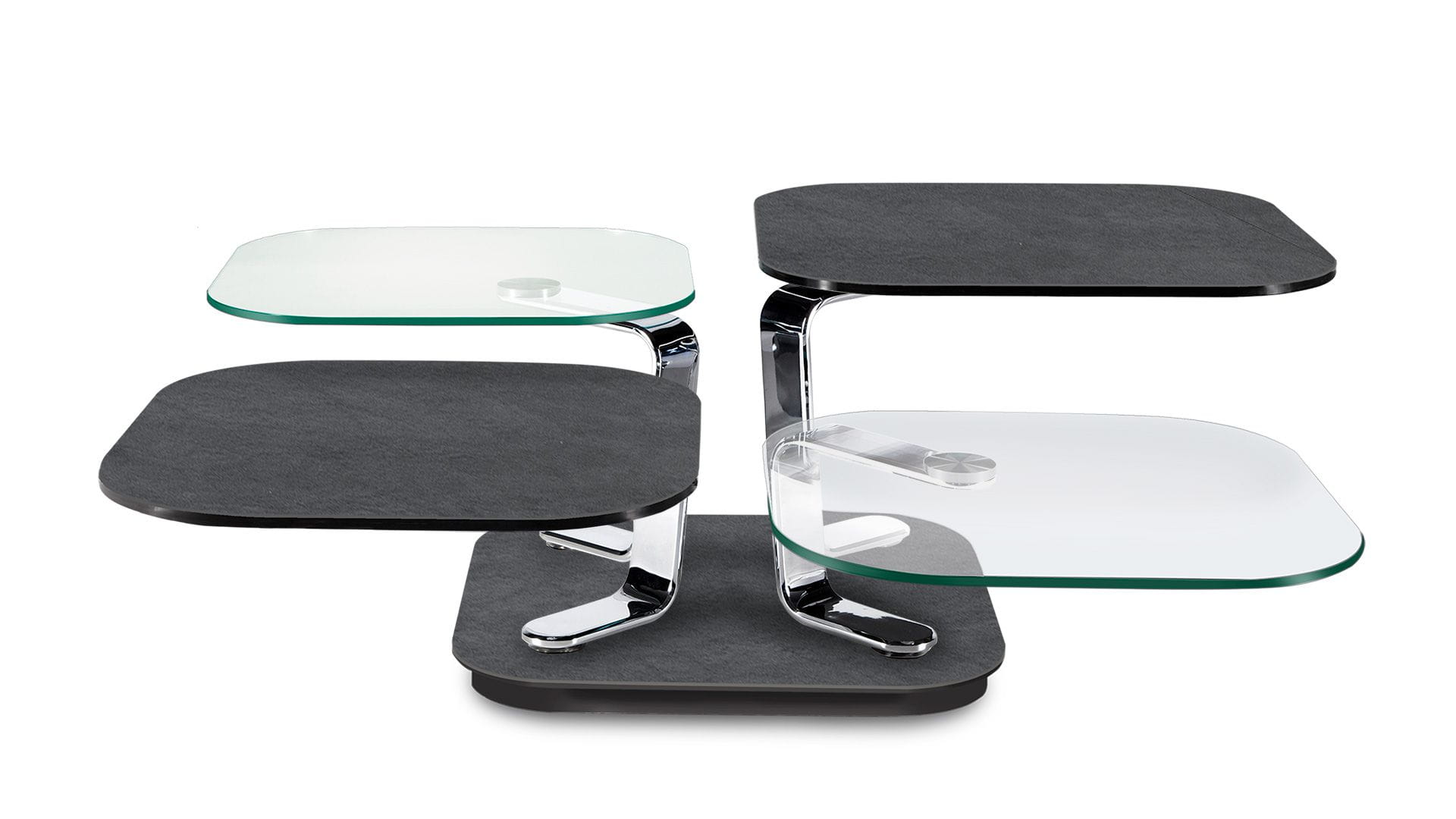 Designerski włoski stolik kawowy MADISON - stolik o intrygującym designie; podstawa metalowa; blaty szkło lub ceramiczne. Unikalny mechanizm rozkładający.