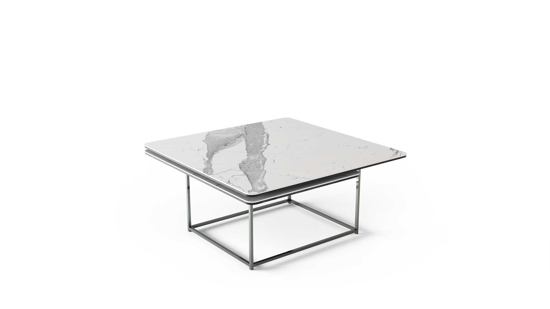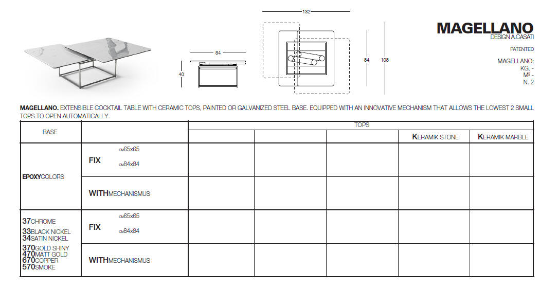Designerski włoski stolik kawowy MAGELLANO - stolik o ciekawym designie; podstawa metalowa; blaty ceramiczne lub marmurowe. Stolik może być wyposażony w mechanizm rozkładający.