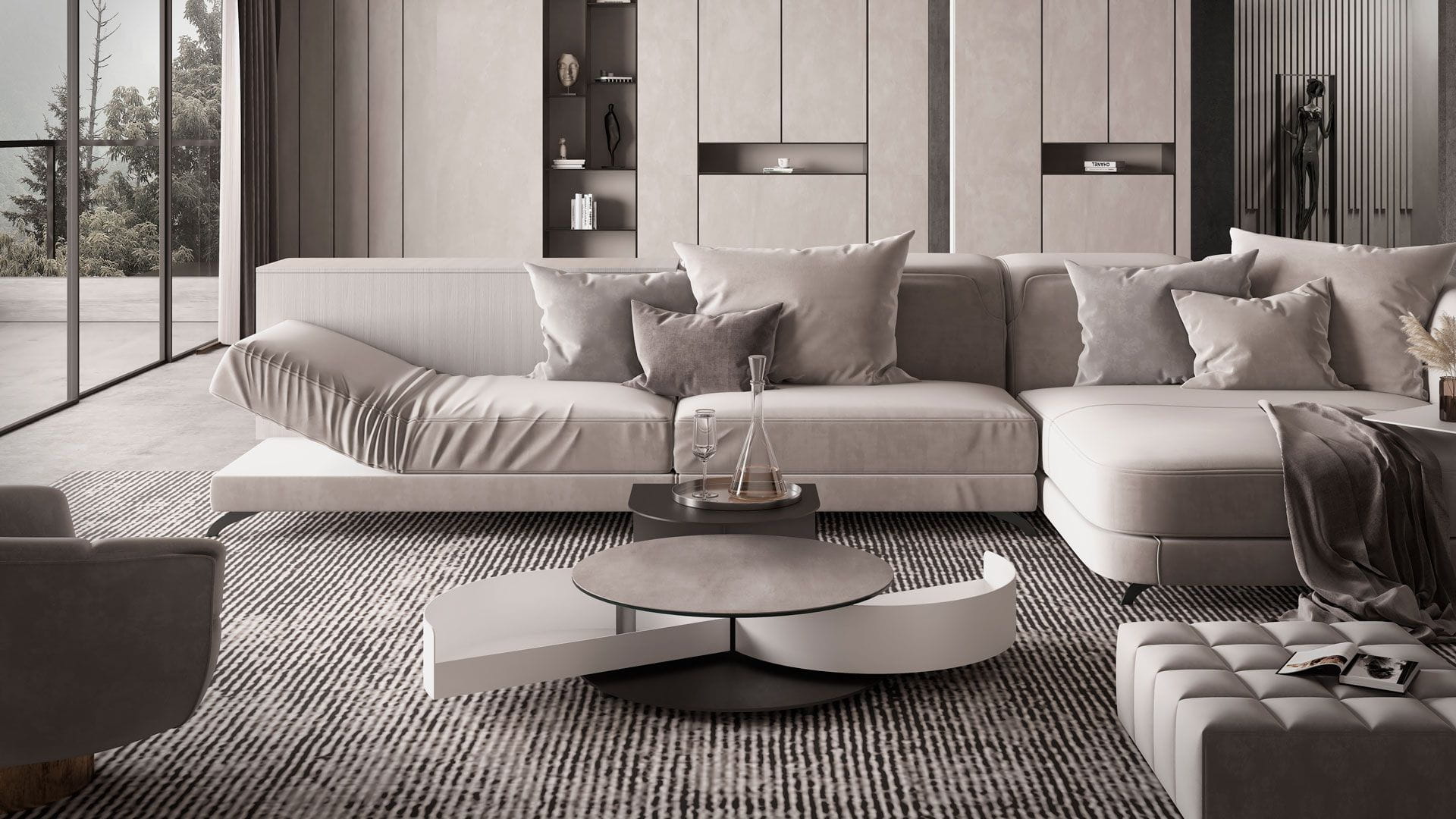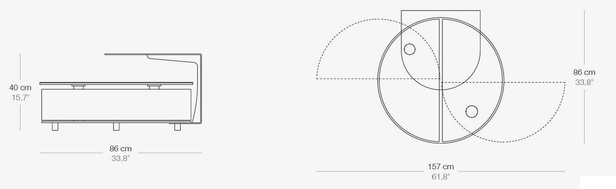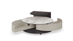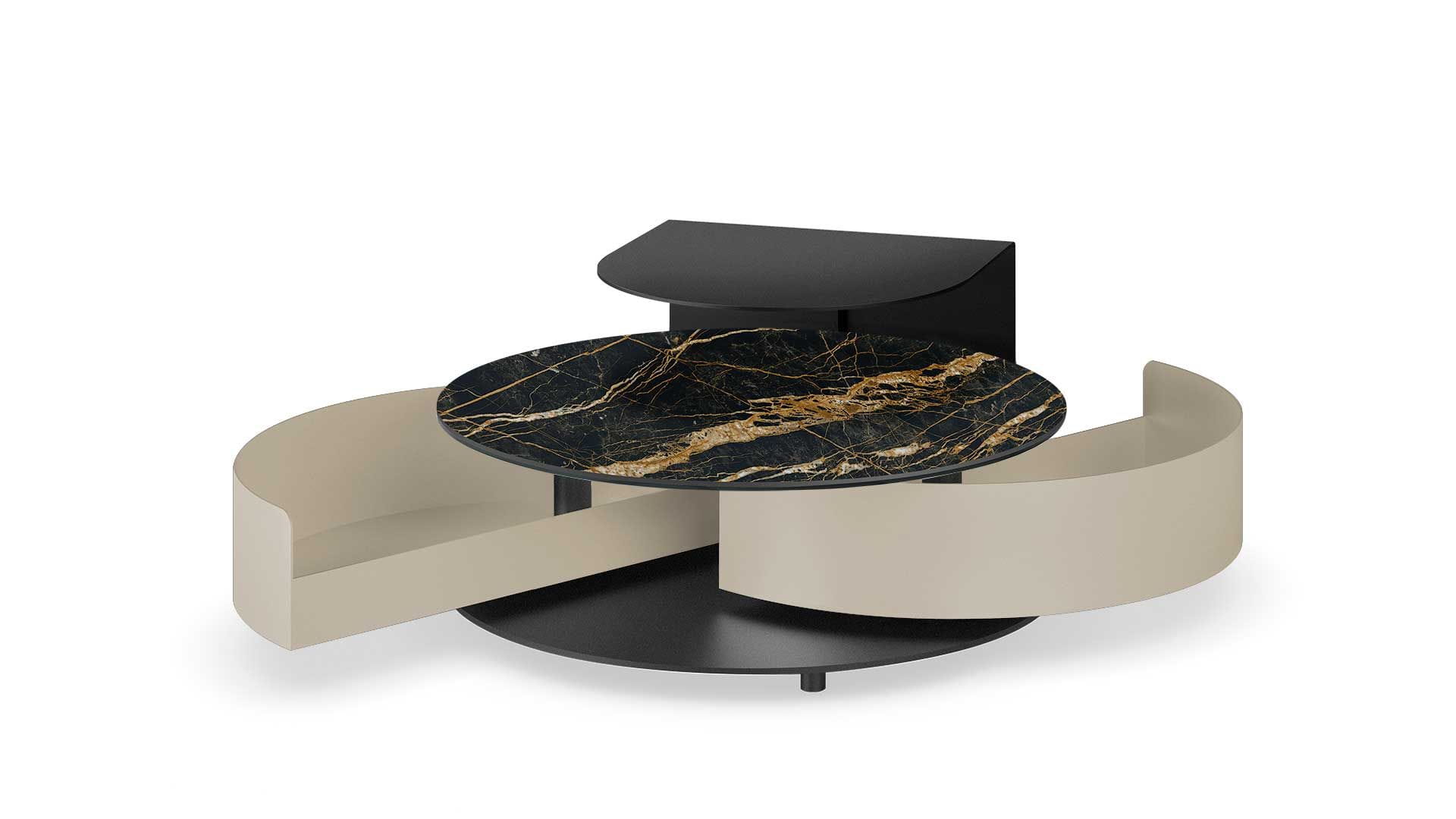 Designerski włoski stolik kawowy THETA SHELF - stolik o intrygującym designie; podstawa metalowa; blat szkło, ceramiczne. Stolik wyposażony w dwie pojemne i wygodne w użytkowaniu szuflady chowane pod blatem. Stolik wyposażony w mechanizm pozwalający na łatwe i synchroniczne otwieranie szuflad. Dodatkowo stolik wyposażony w metalową półkę.