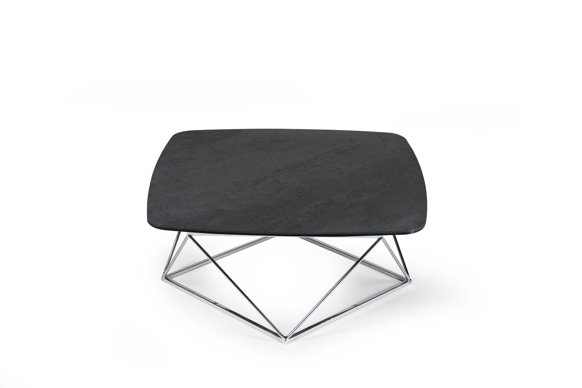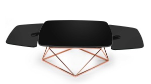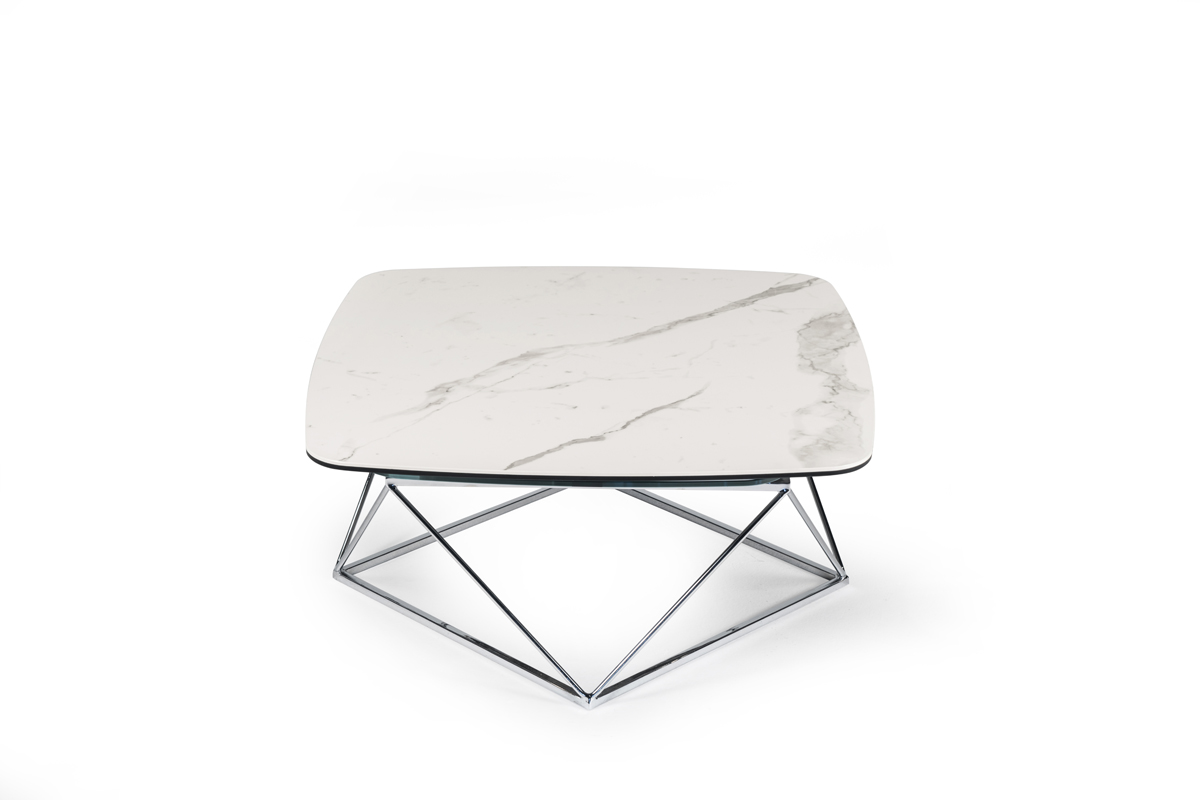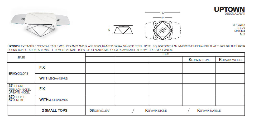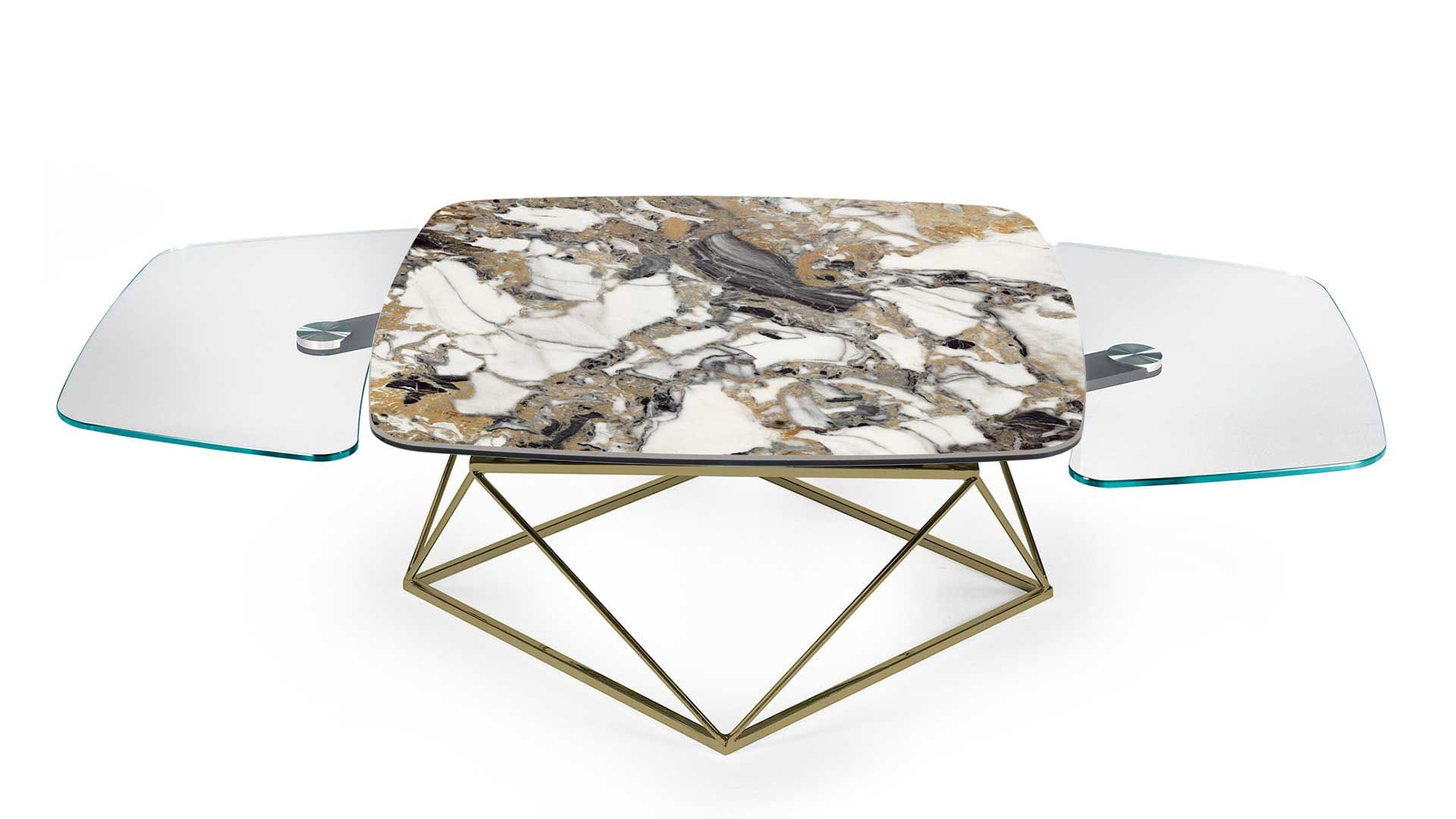 Designerski włoski stolik kawowy UPTOWN - stolik o intrygującym designie; podstawa metalowa; centralny blat ceramiczny, dwa blaty pomocnicze ceramiczne lub szklane. Stolik dostępny w wersji rozkładanej i nierozkładanej.