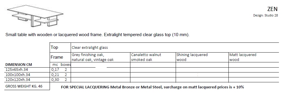 Stolik kawowy ZEN - nowoczesny włoski stolik; podstawa drewniana dostępna w wielu kolorach; blat szkło transparentne; stolik dostępny w trzech rozmiarach.