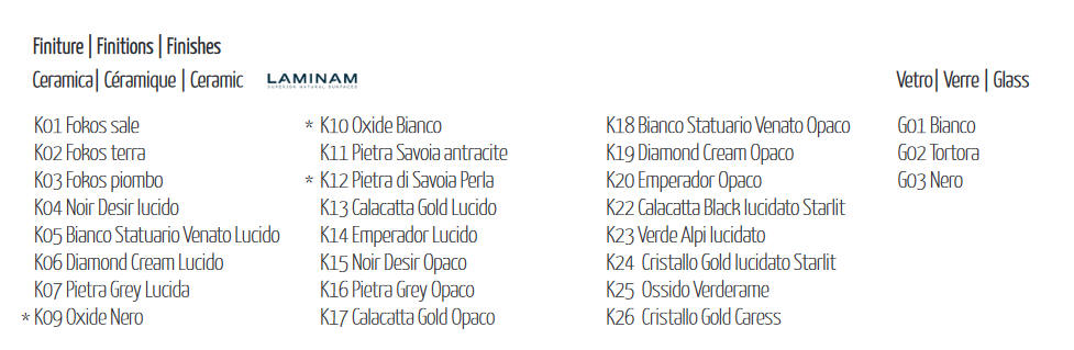 Blaty szklane, ceramiczne i efekt moratr look - wewnętrzna strona z melaminy kolorystycznie dopasowana do koloru blatu.