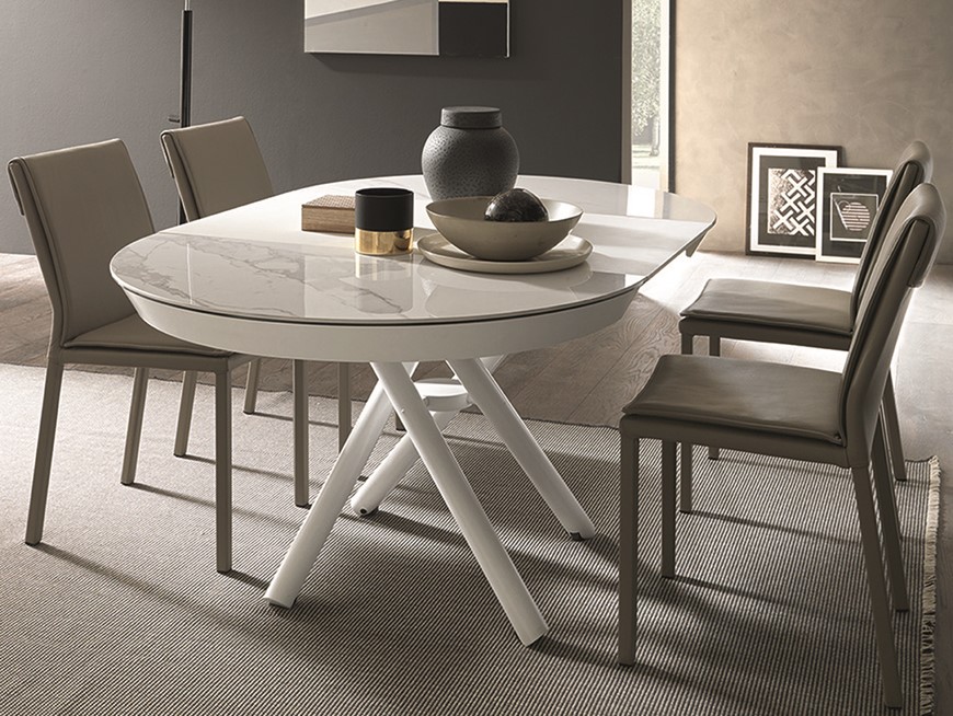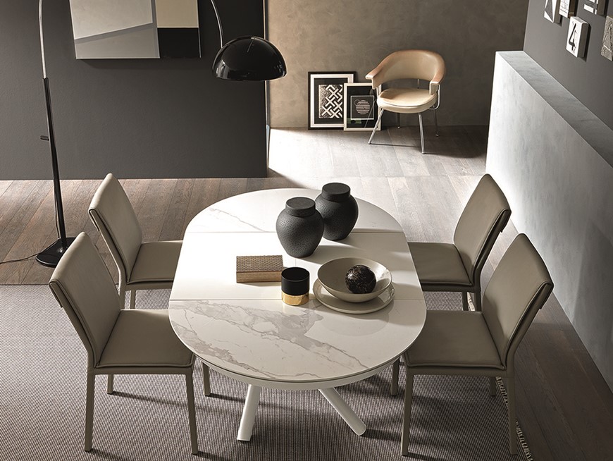 Nowoczesny włoski stolik podnoszony rozkładany do wielkości stołu HELIOS - stół regulowany ze stolika kawowego do stołu jadalnianego; podstawa metalowa; mechanizm podnoszenia gazowy; w podstawie ukryte kółka ułatwiające regulację wysokości; regulacja wysokości od 36 cm do 75 cm; blat: Melamine, szkło, szkło frosted, Open pore lacquered, Oak veneer, Mortar-look, Ceramic.