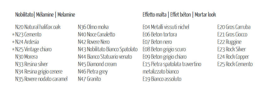 Cena podstawowa dotyczy wariantu z podstawą M02, M04, M11, M12, M19, M24, M25, M27; blat melamina. Pozostałe warianty za dopłatą.