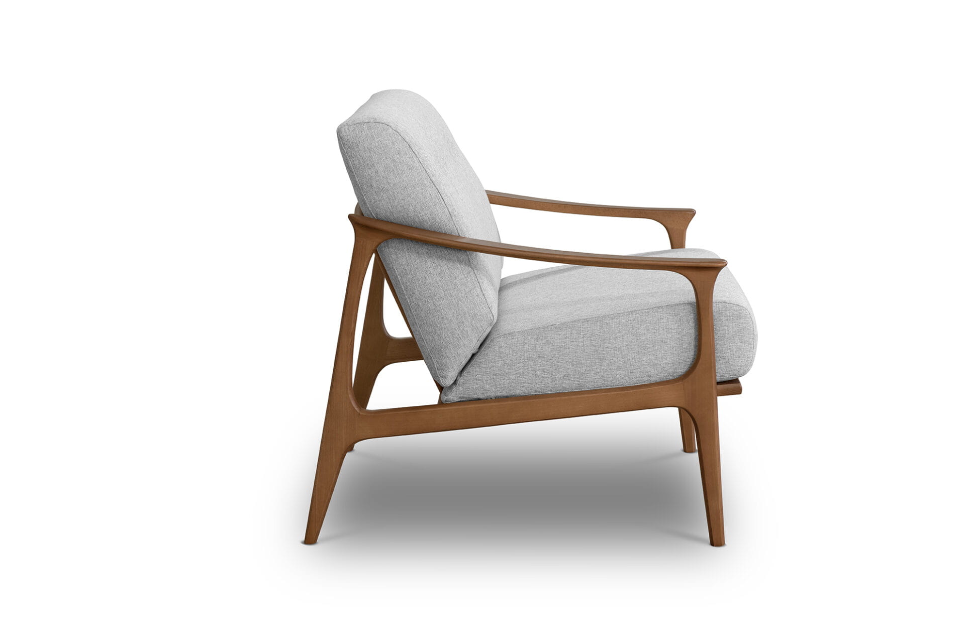 Fotel model 52.19; rama wykonana z drewna; siedzisko tapicerowane szeroką gamą tkanin obiciowych i skór naturalnych. Fotel wykonany z najwyższą starannością i dbałością o detale.
