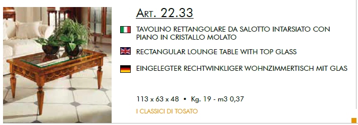 Ława stylizowana model 22.33 - Tosato Classic Collection.