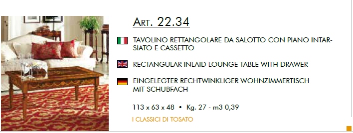 Ława stylizowana model 22.34 - Tosato Classic Collection.