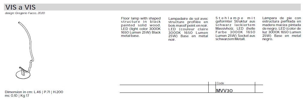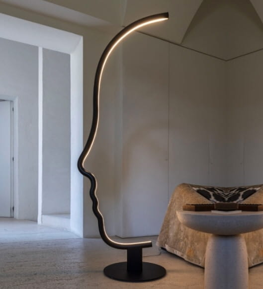 Lampa włoska VIS A VIS - lampa podłogowa o interesującej linii; doskonała dla ceniących rozwiązania niepowtarzalne.