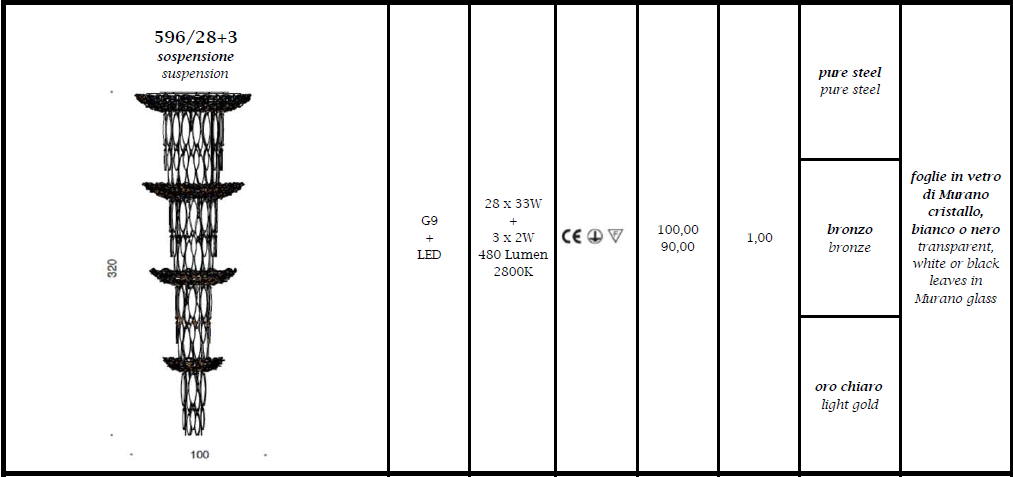 Lampa wisząca, żyrandol ELITE 596/28+3 - efektowna seria lamp, doskonała do wnętrz w stylu galmour; metalowa elementy w trzech kolorach i dekoracje ze szkła Murano w trzech kolorach; specyfikacja produktu poniżej; oryginalny produkt włoski.
