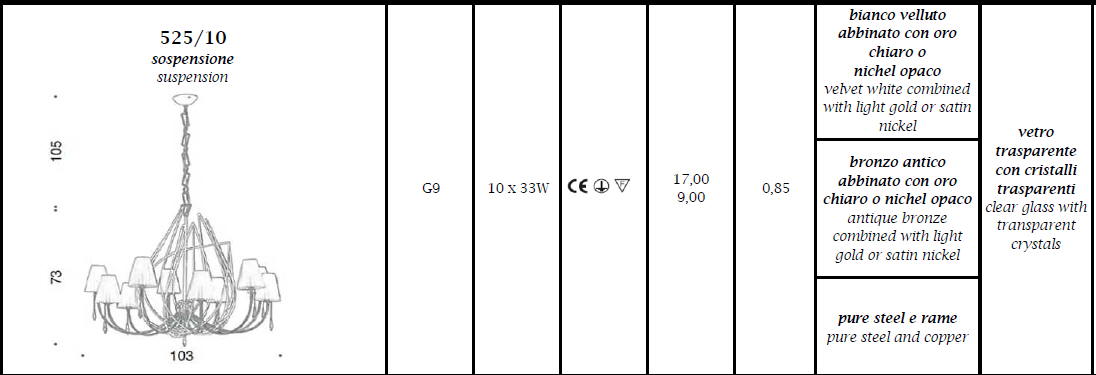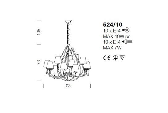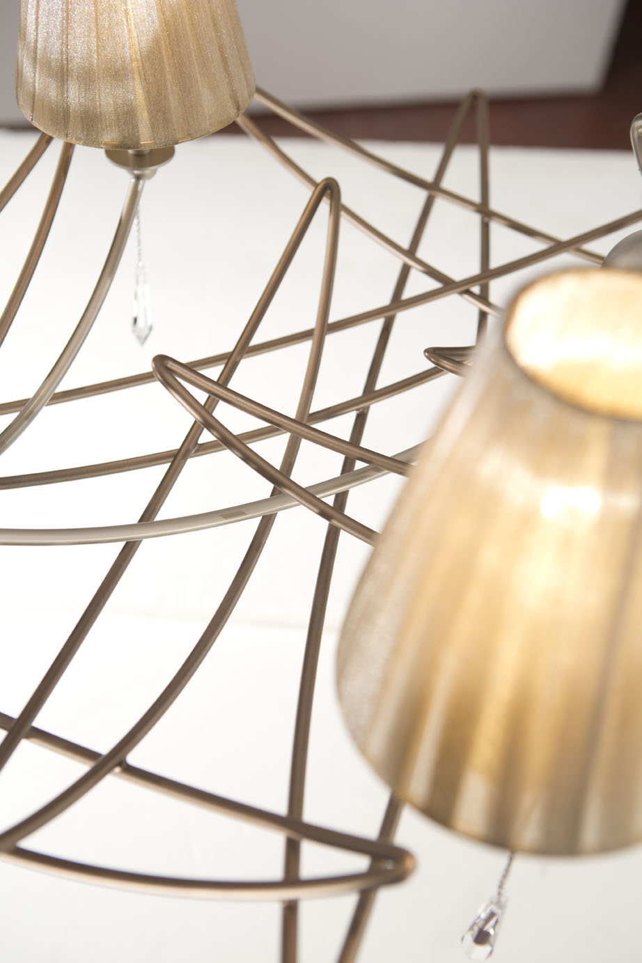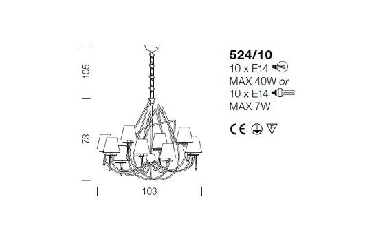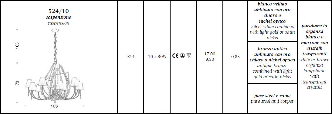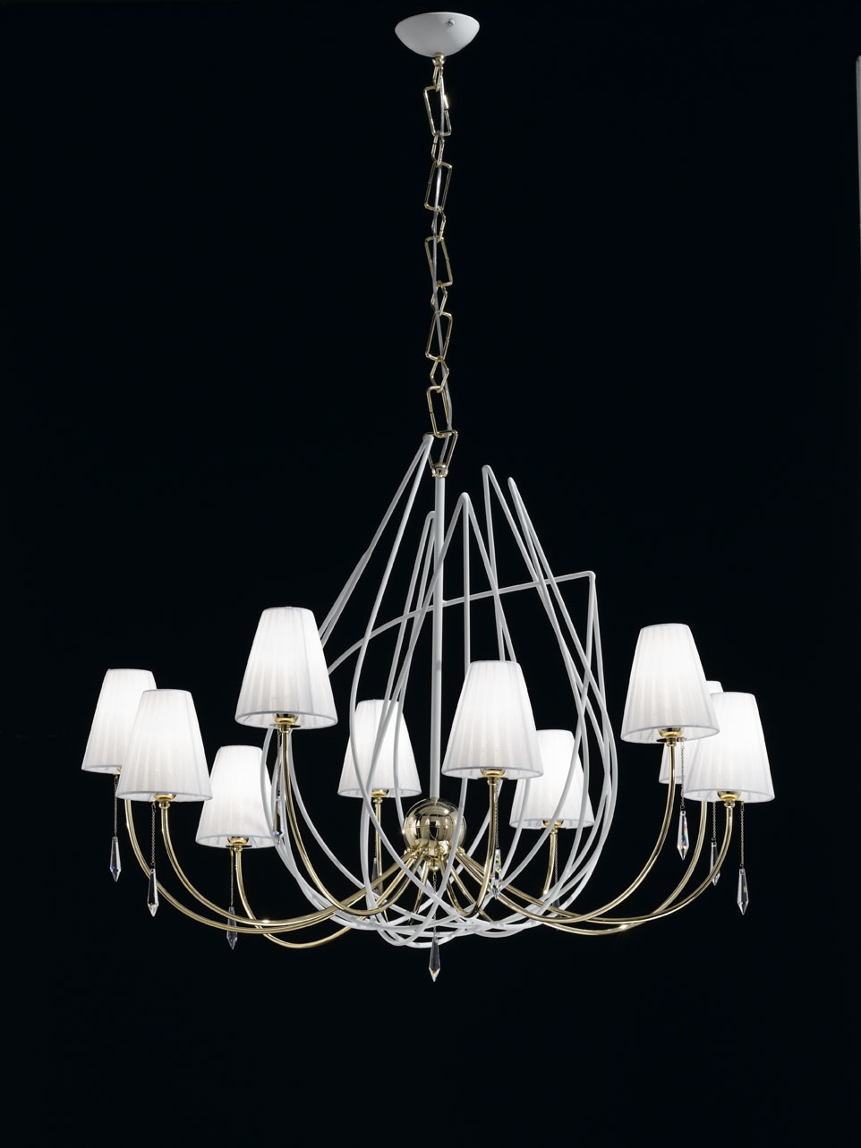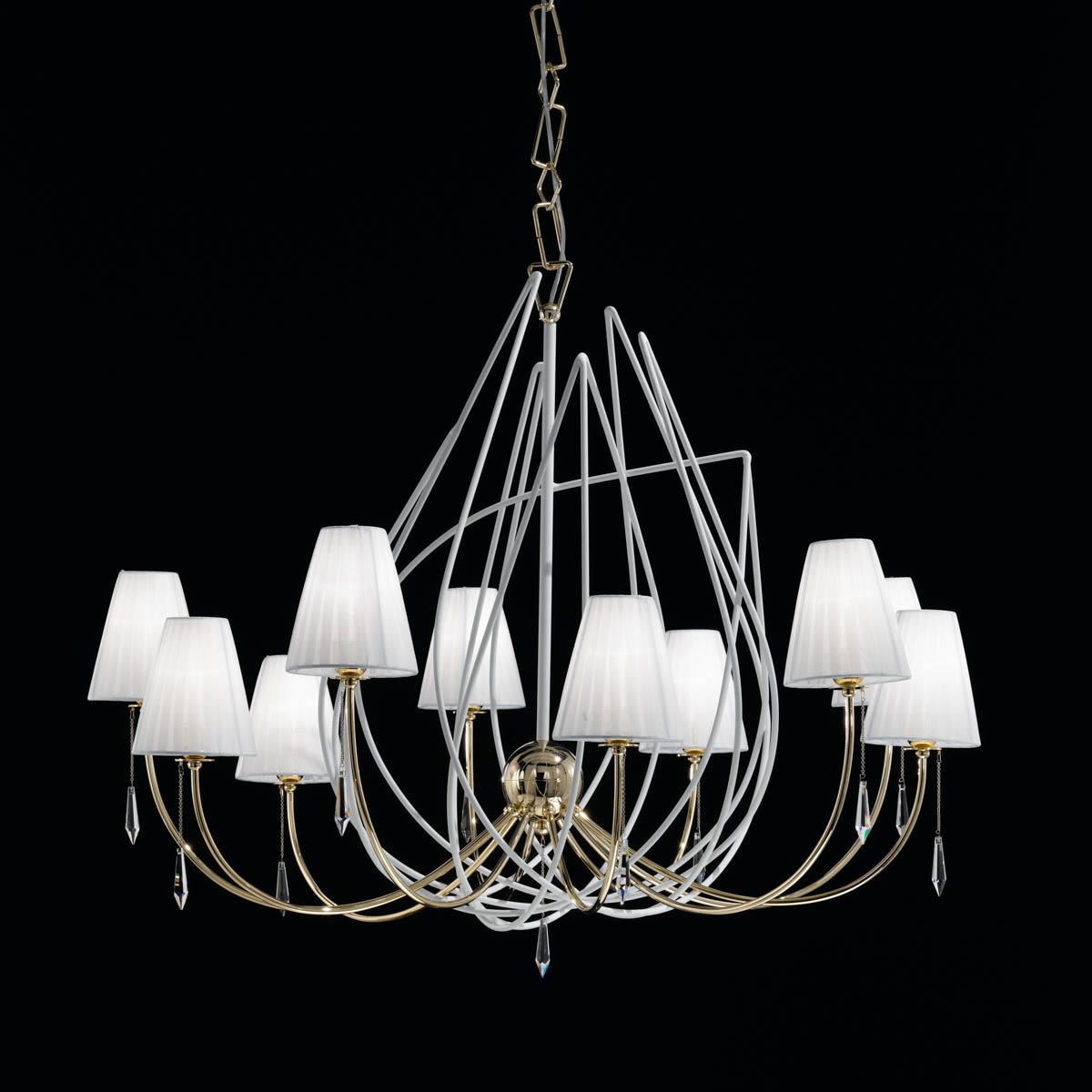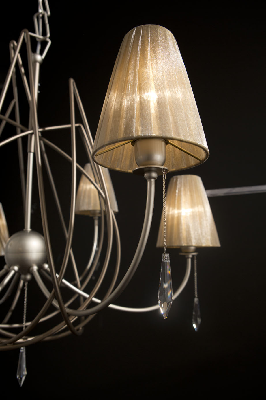Lampa wisząca, żyrandol FLAME 524/10, 525/10 - dekoracyjna lampa, konstrukcja metalowa w kilku wariantach kolorystycznych; klosze o klasycznym kształcie w modelu 525 szklane, w modelu 524 z organzy; specyfikacja produktu poniżej; oryginalny produkt włoski.